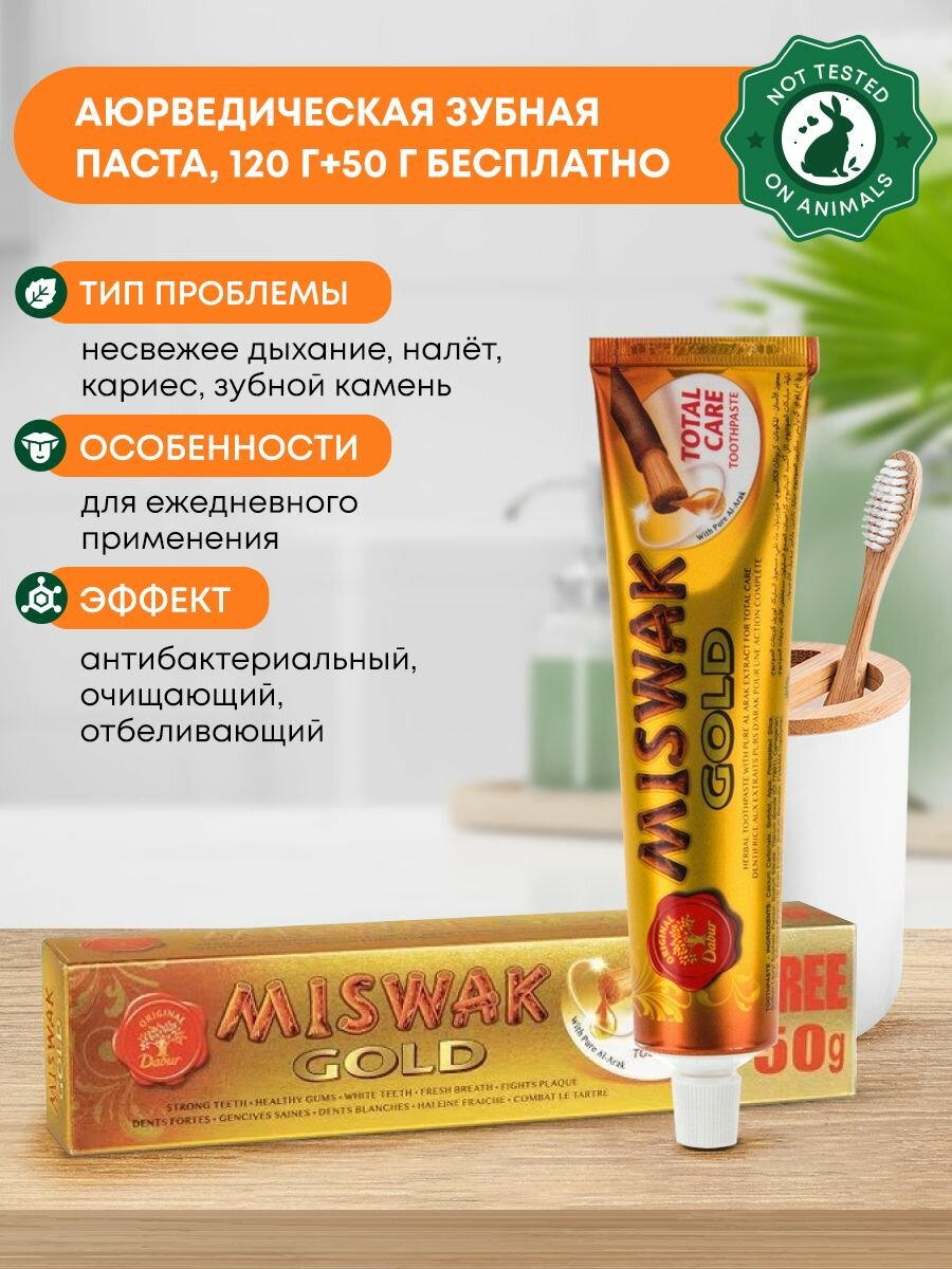 Зубная паста аюрведическая, антибактериальная с экстрактом аниса и дерева Месвак (Мишвак Голд Toothpaste Dabur Miswak Gold), 120г+50г бесплатно
