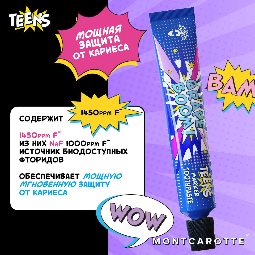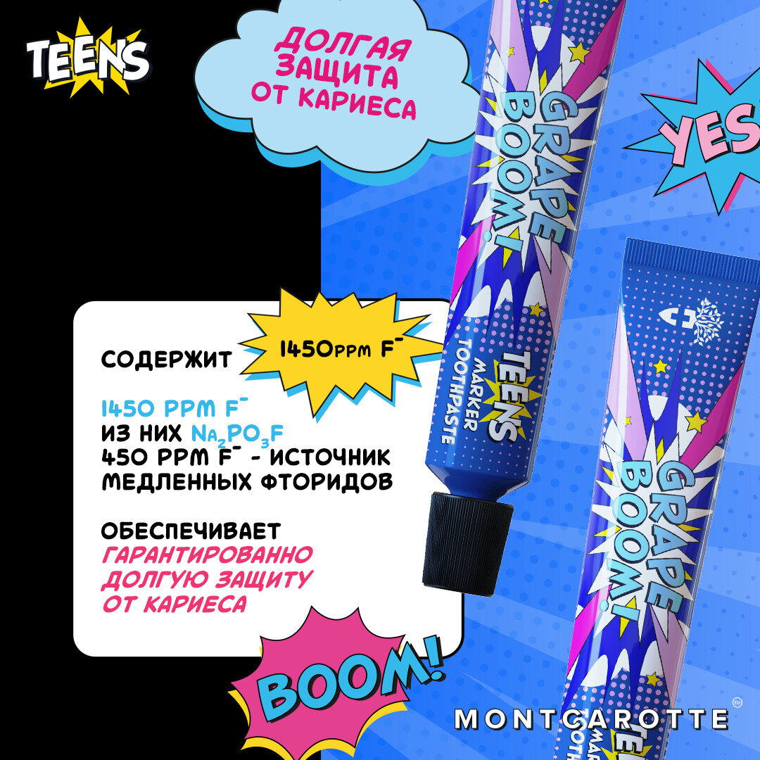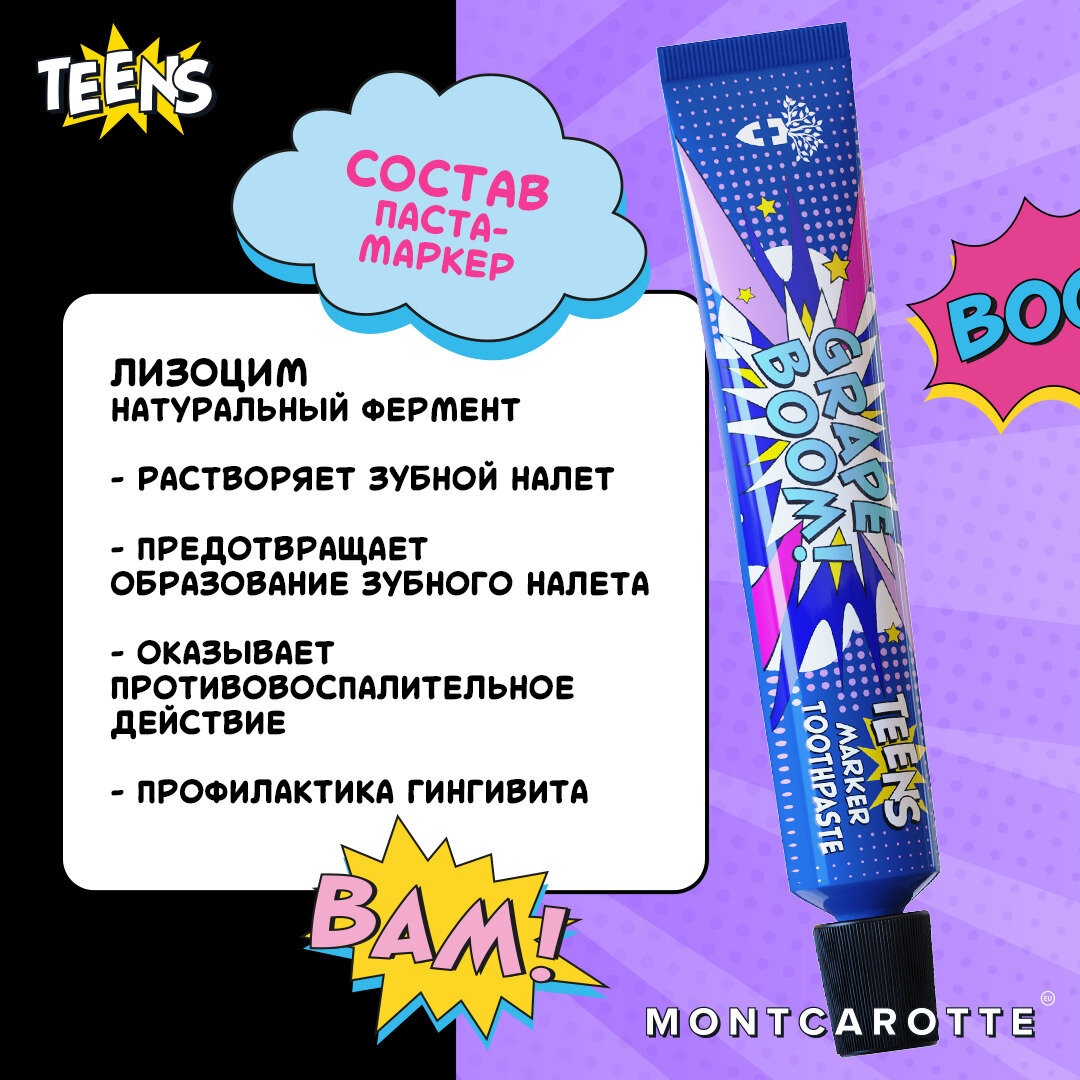 СохранитьЗубная паста - маркер, индикатор налета Montсarotte Grape BOOM, со вкусом винограда, обучение чистке зубов, 30 мл, Монткаротт, Италия интересное: