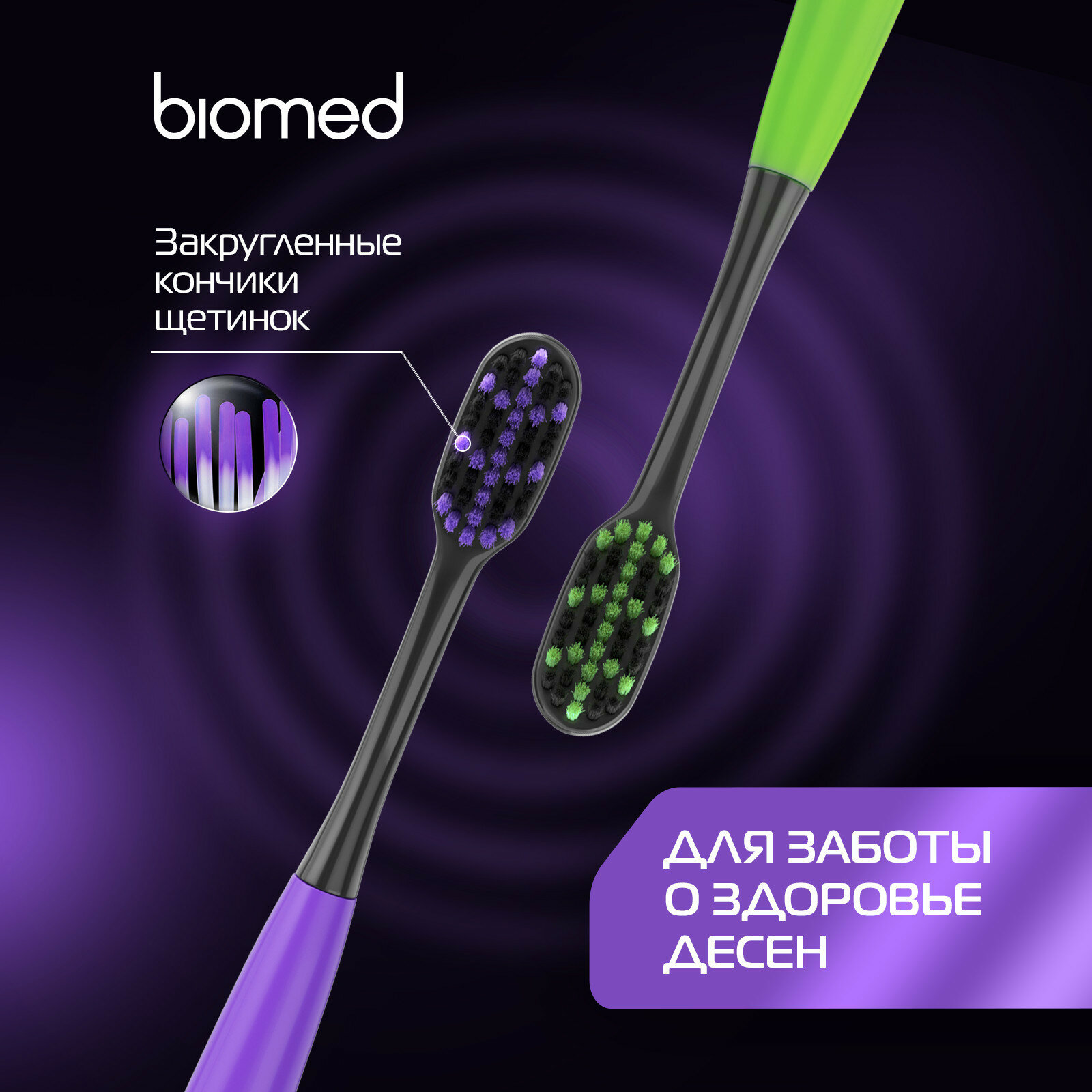 Купить Зубная щетка BIOMED BLACK, средняя, набор 2 шт., зеленая, фиолетовая