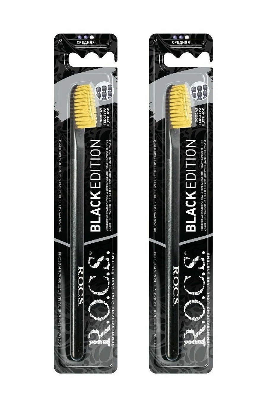 Зубная щетка R.O.C.S. Black Edition Classic, черная/черная, 2 щетки