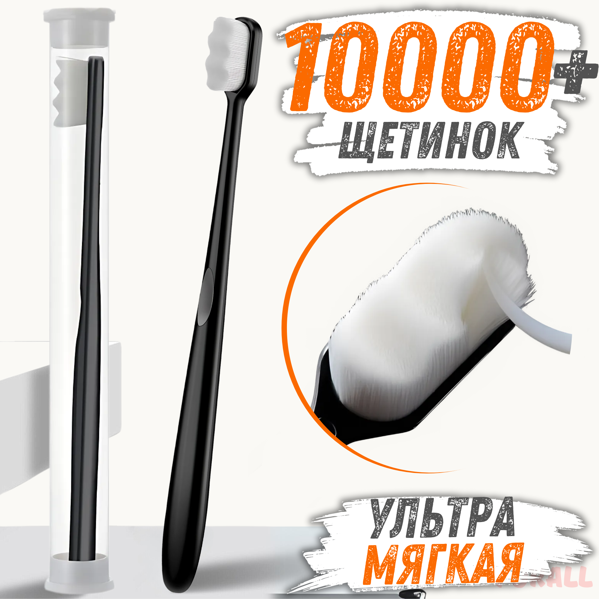Зубная щетка 10000+ чёрная ручка, волнистая щетина