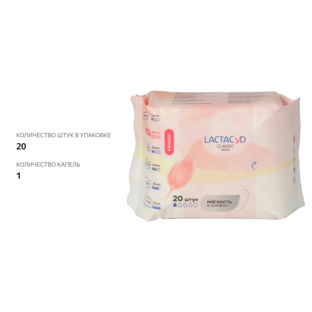Прокладки женские впитывающие для ежедневного использования LACTACYD:Classic(Классик),20 шт