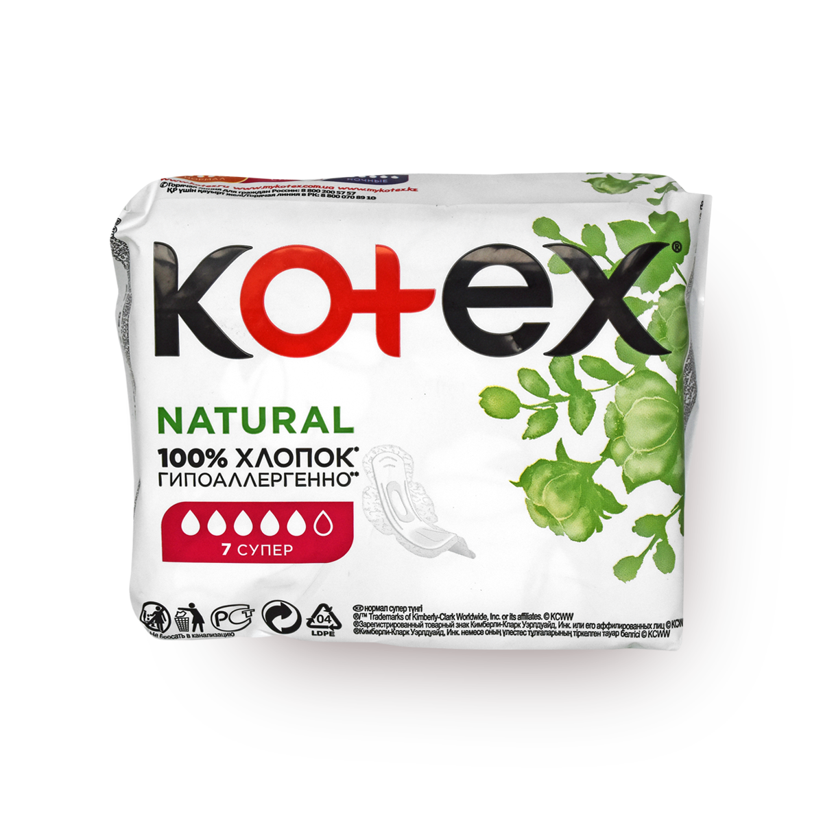Прокладки женские гигиенические Kotex Natural Super, 7 шт