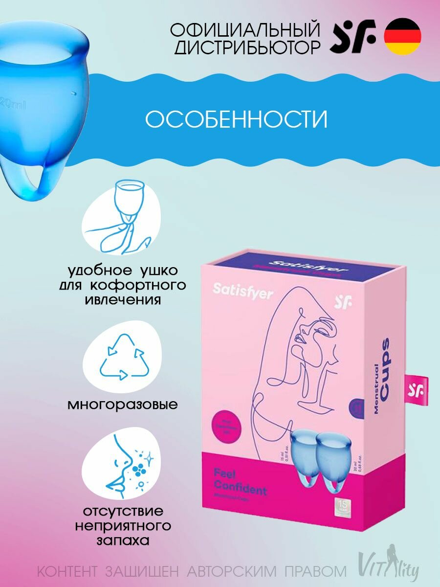 СохранитьНабор из 2 менструальных чаш с петелькой Satisfyer синий интересное:
