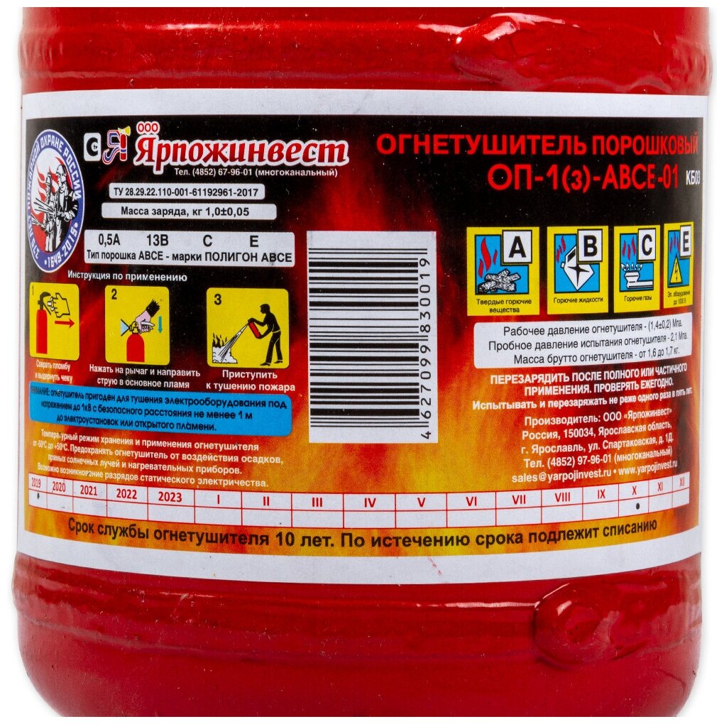 Порошковый огнетушитель Ярпожинвест ОП-1(з)-ABCE-01 автомобильный интересное: