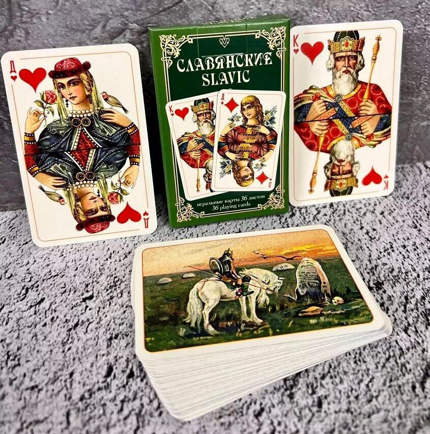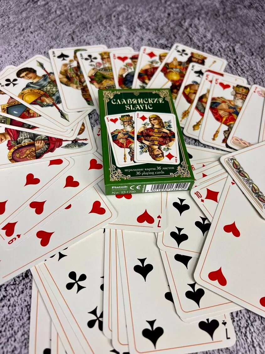 Игральные карты славянские, Piatnik, рубашка зеленая, 36 листов интересное: