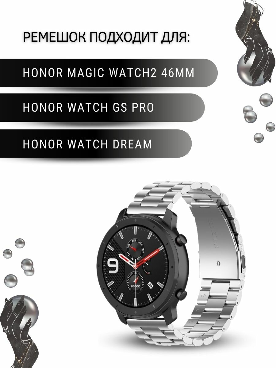 Ремешок для часов Honor, для часов Хонор, металлический, шириной 22 мм, серебристый интересное:
