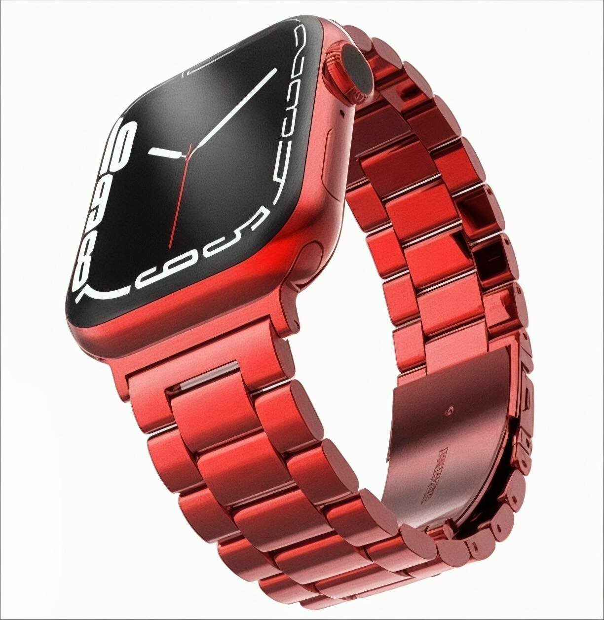 СохранитьМеталлический блочный ремешок красный(матовый) для Apple Watch 1-9, SE, ULTRA 42-44-45-49 мм интересное: