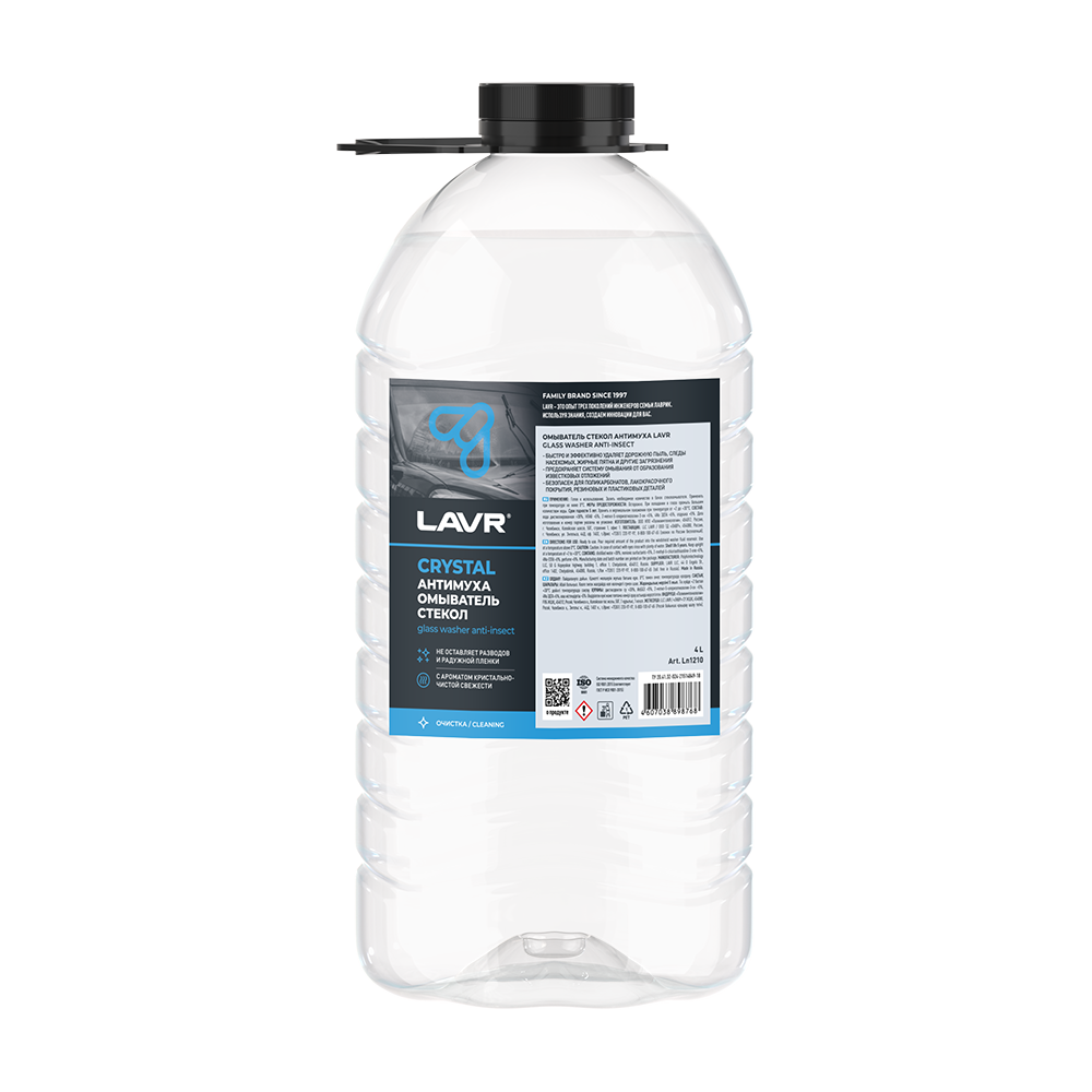 LAVR Жидкость стеклоомывателя летняя 4л - летняя, готовая к применению антимуха CRYSTAL