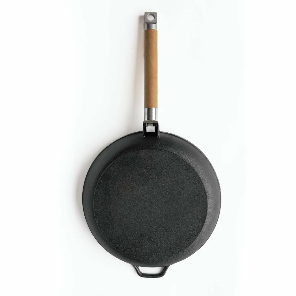 Сковорода чугунная со съемной деревянной ручкой и двумя сливами 24см Гардарика 0224
