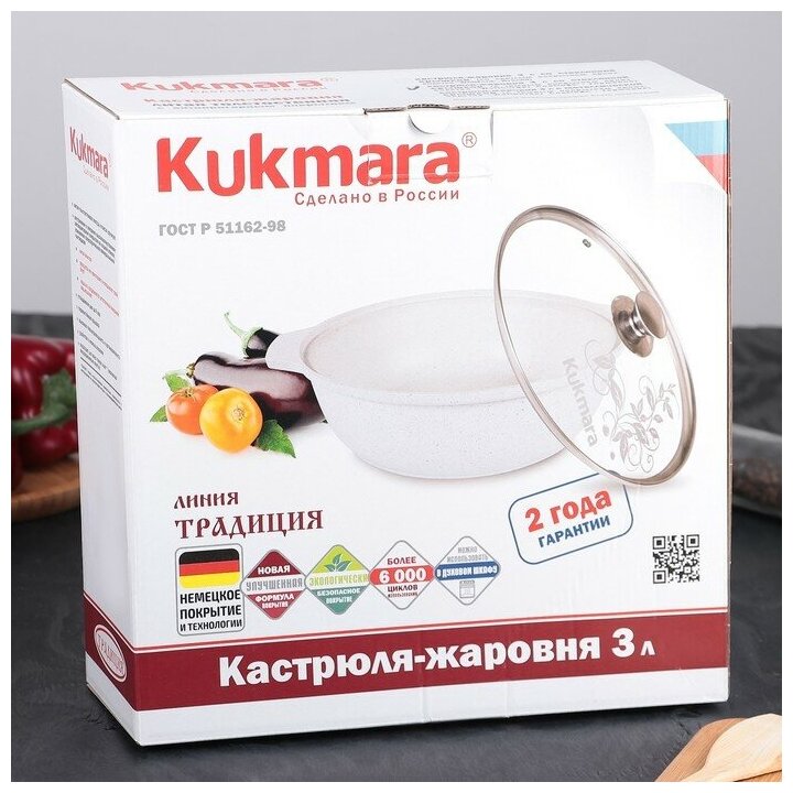Жаровня Традиция, d=26 см, 3 л, стеклянная крышка, антипригарное покрытие KUKMARA 172930 .