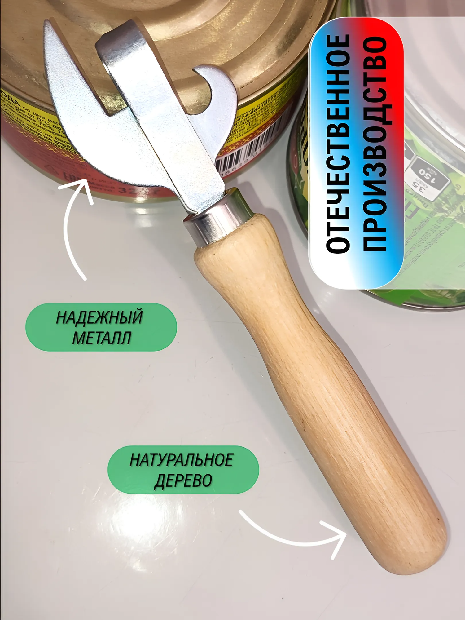 | Дополнительная информация | Советская открывалка также откроет крышку у банки с домашним консервированием, а также железную пробку у бутылки |
