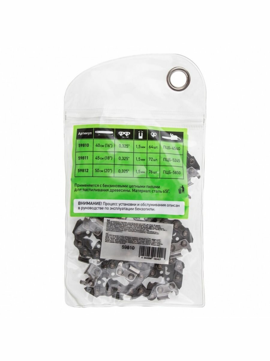 Купить Цепь для бензопилы Сибртех ПЦБ-4540 шина 40 см (16"), шаг 0, 325", паз 1, 5 мм, 64 звена 59810