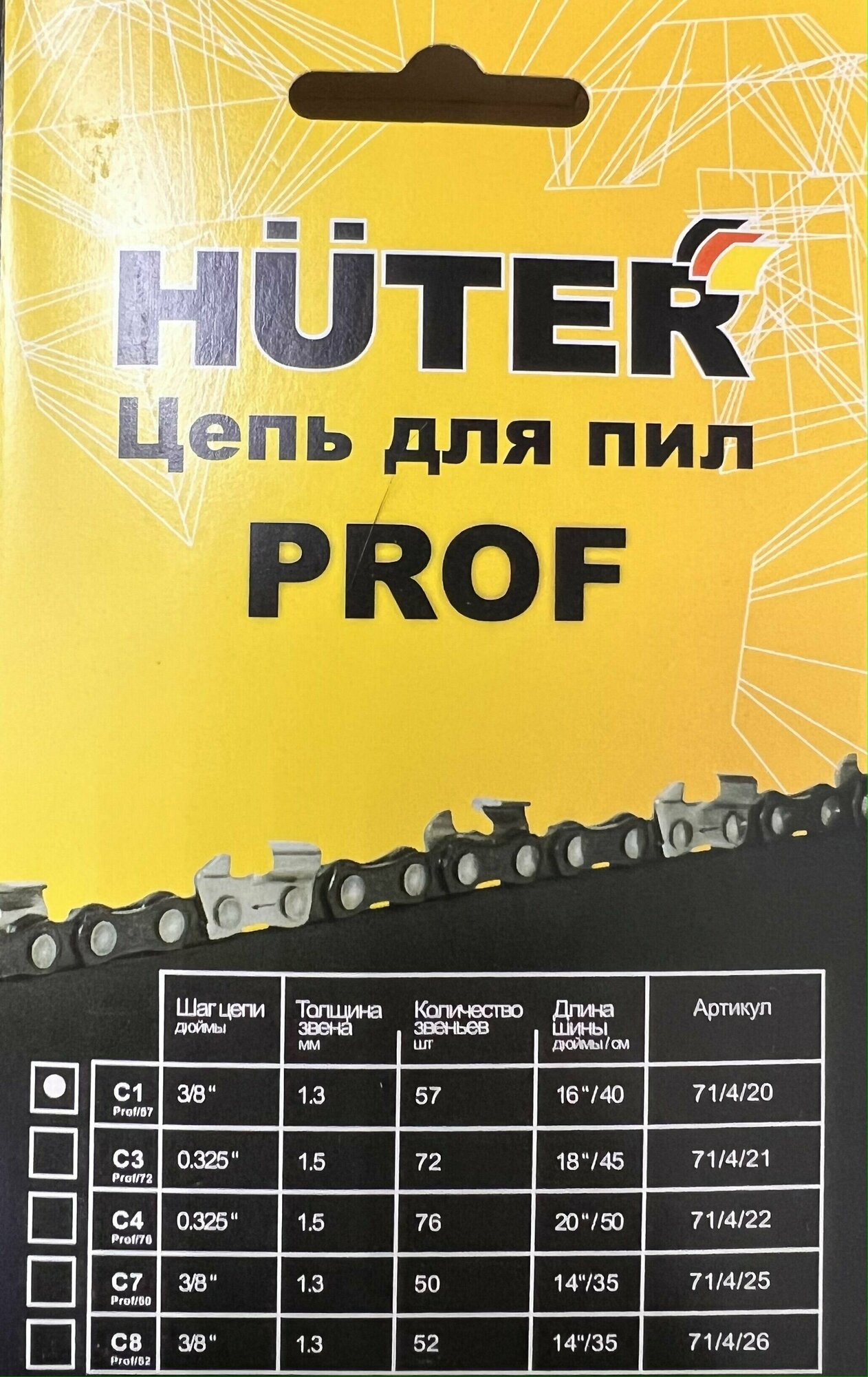 Цепь С7 Prof/50 Huter, 3/8"-0,375 -1,3-50