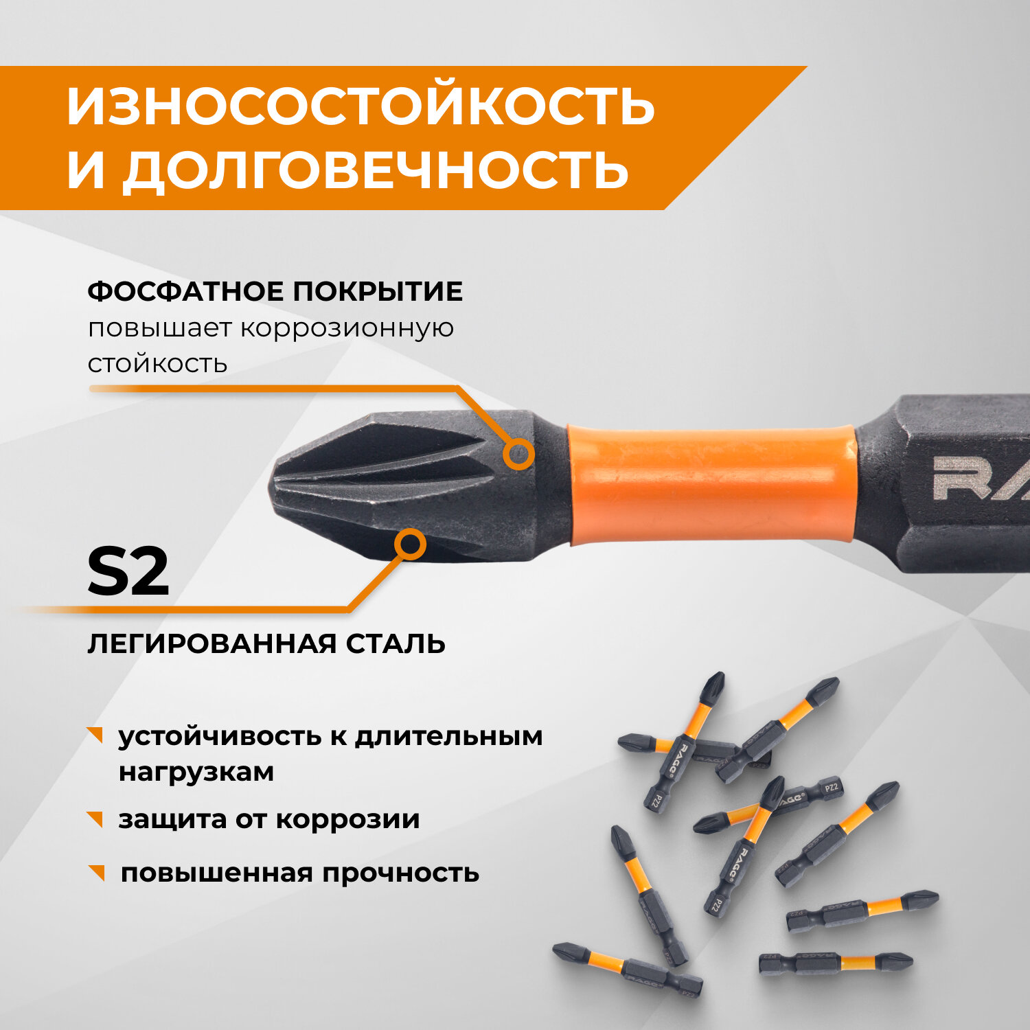 Биты магнитные S2 PZ2 x 50 мм 10 шт RAGE by VIRA интересное: