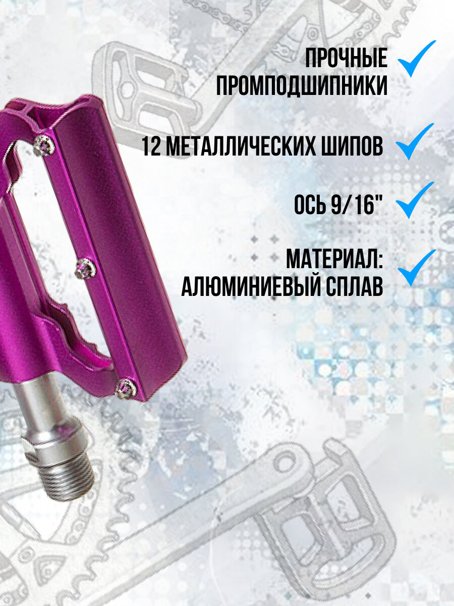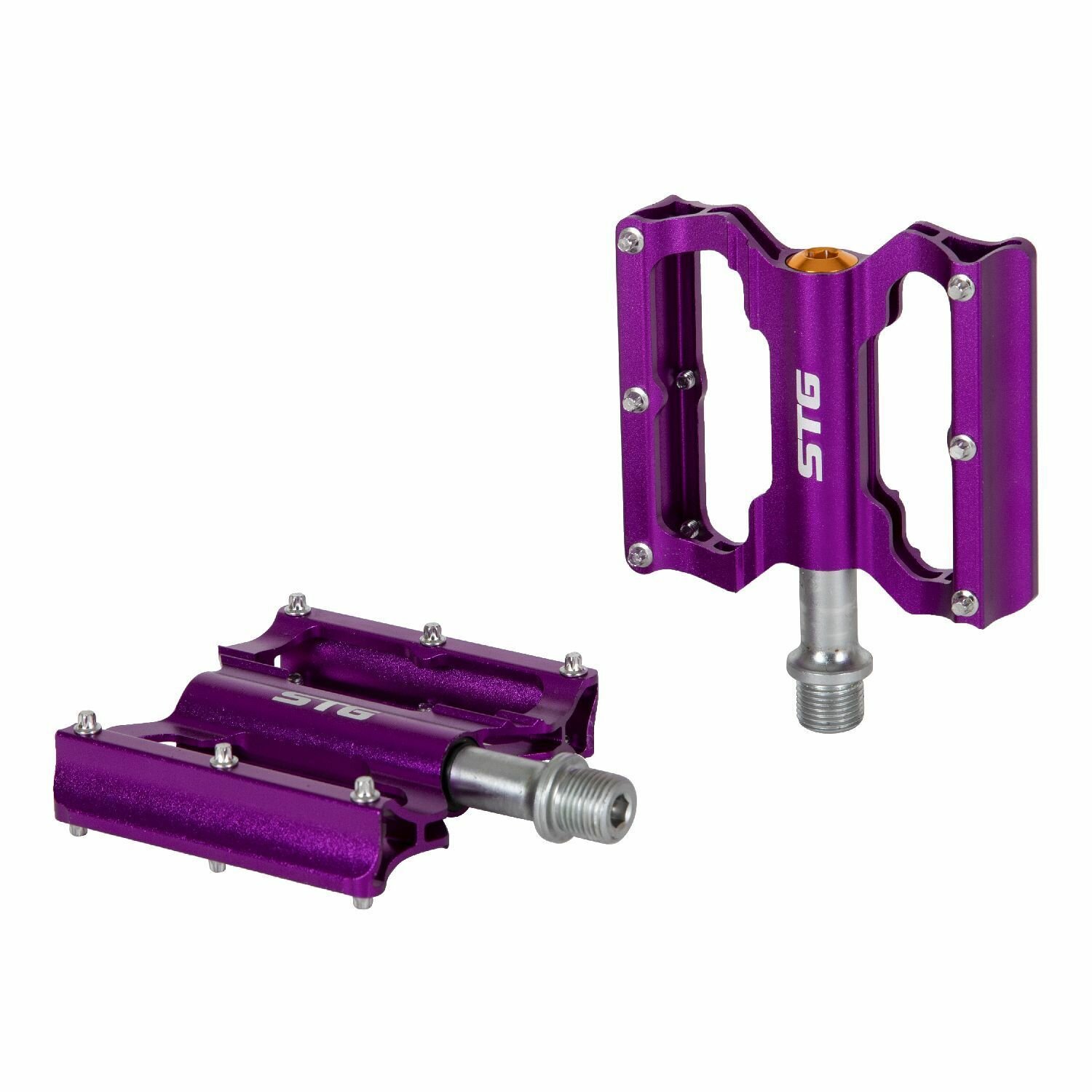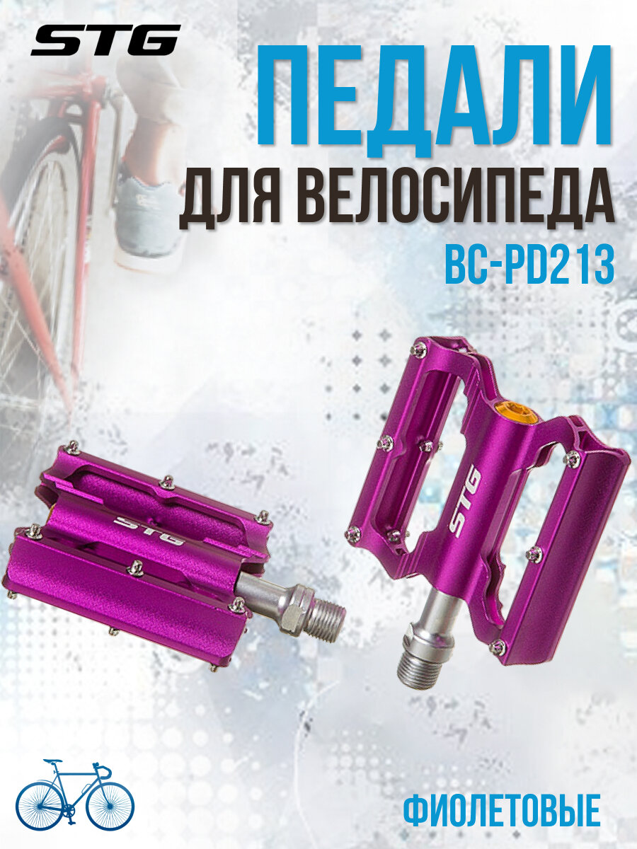 Педали велосипедные STG BC-PD213 алюминий, на промышленных подшипниках, фиолетовые