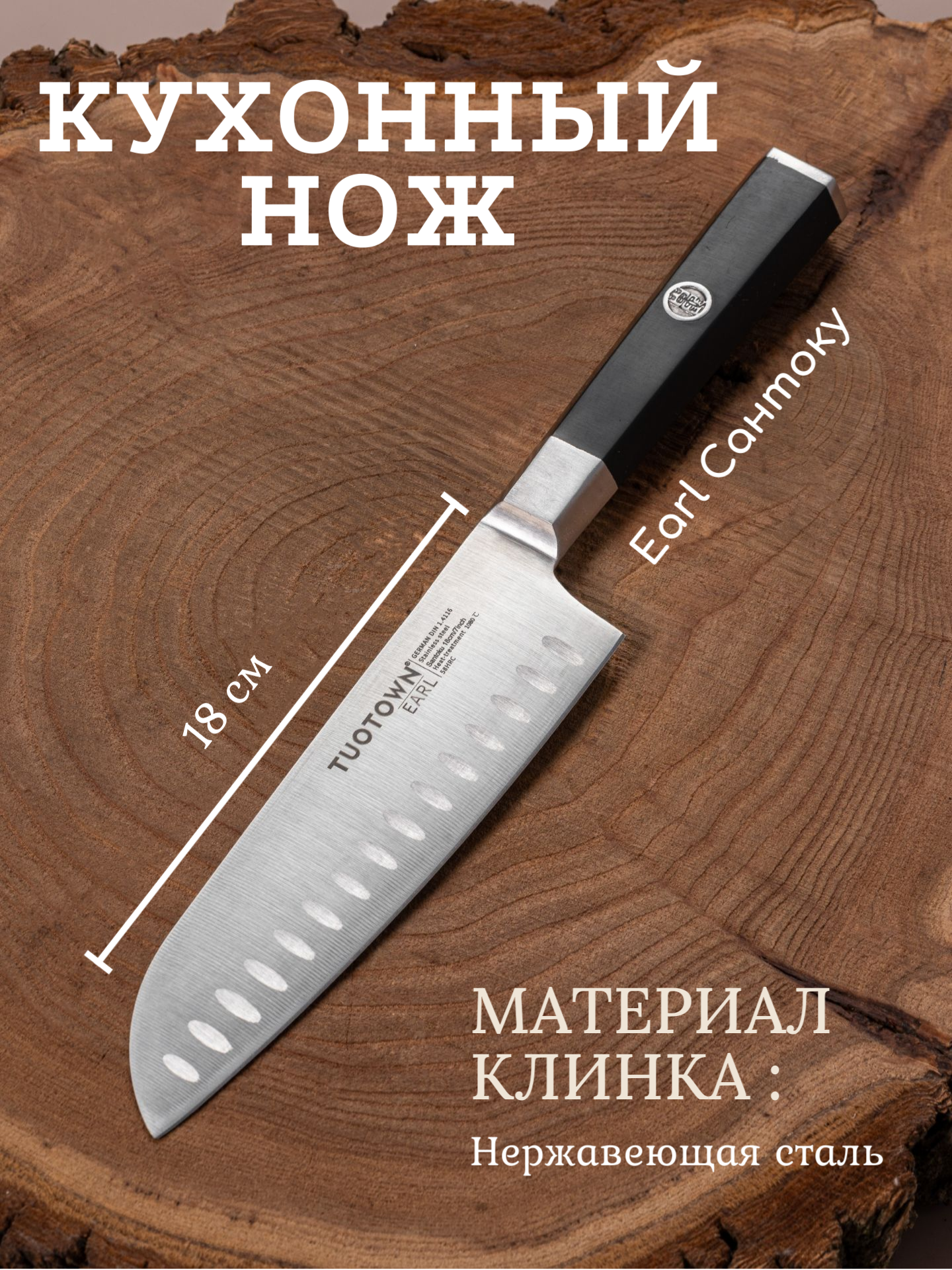 TuoTown 167008 — Кухонный нож Сантоку серии Earl-W, из нержавеющей стали (рукоять ABS-пластик), 17 см