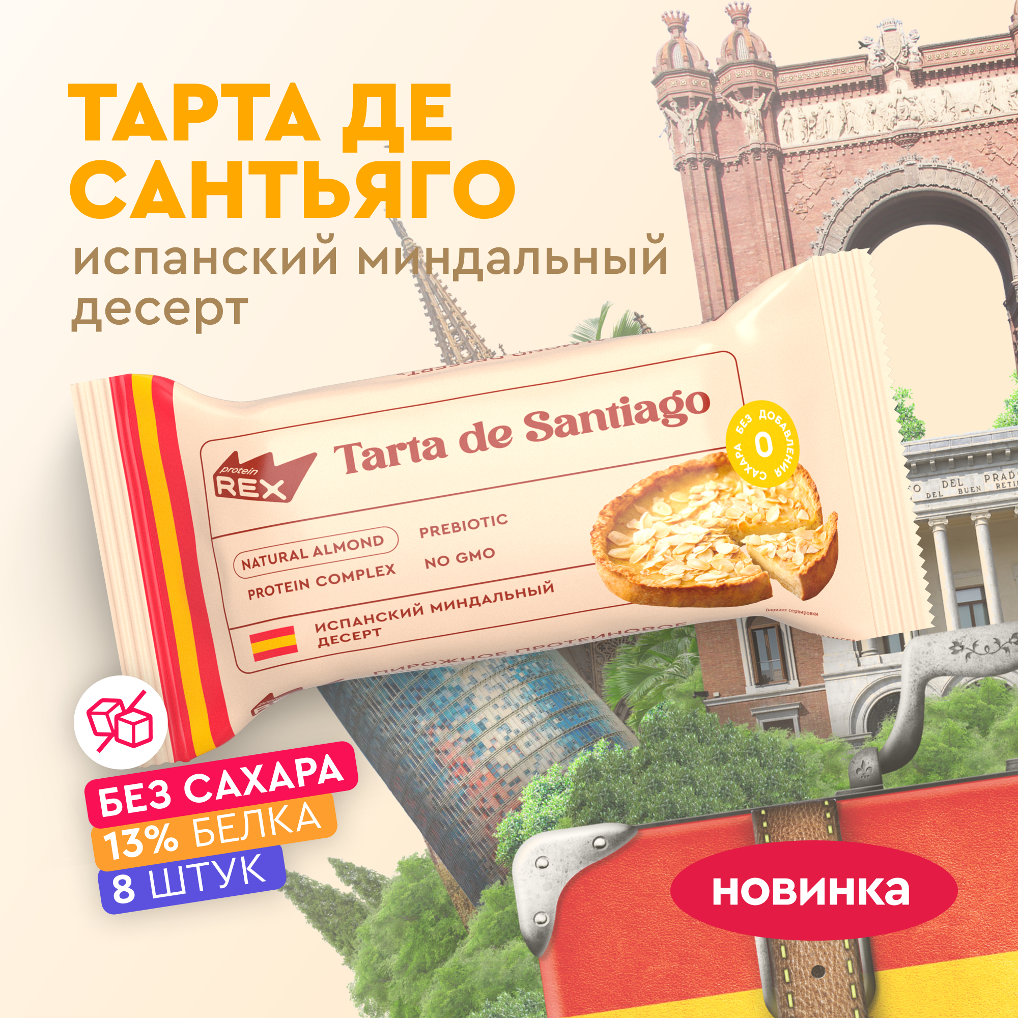 Купить Протеиновое печенье без сахара ProteinRex Миндальный десерт 8 шт десерт, батончик, 173 ккал