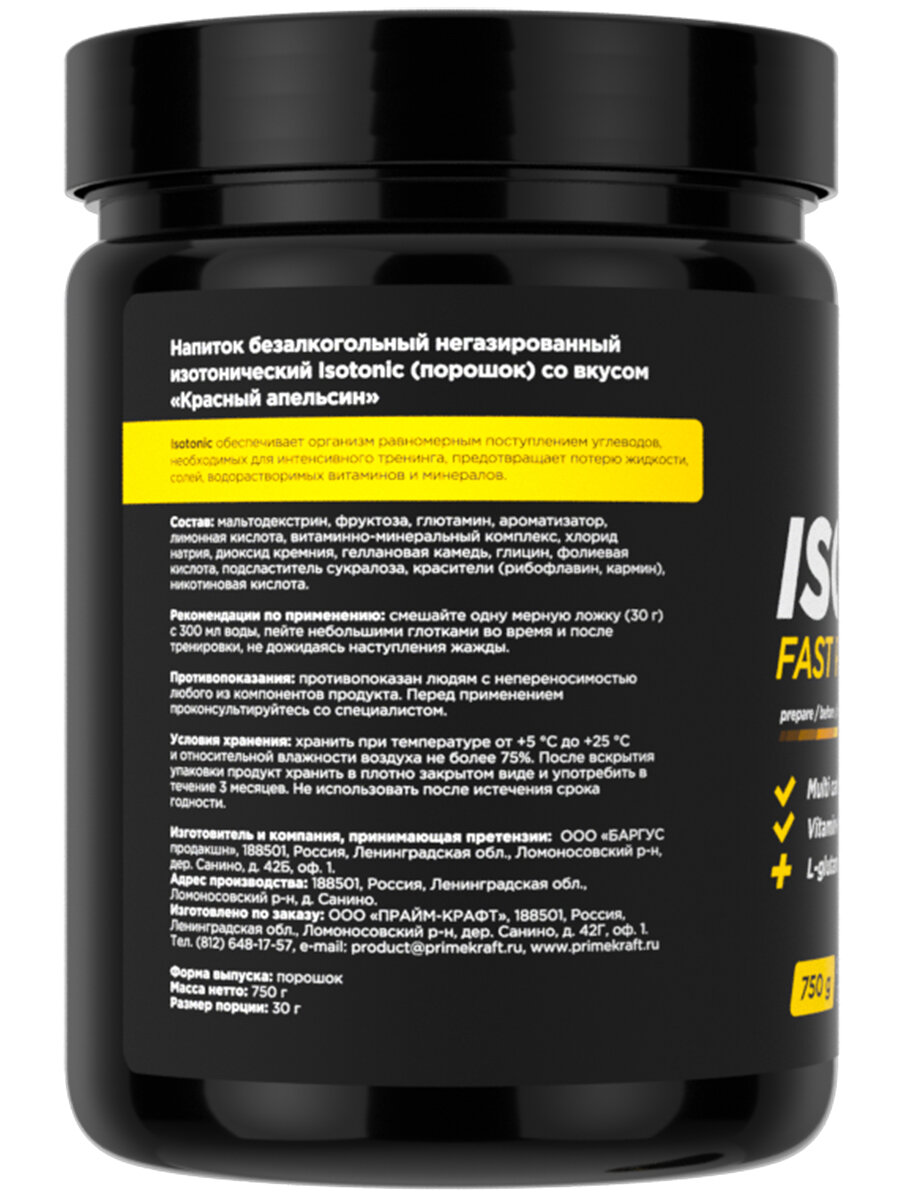 Изотоник Prime-Kraft ISOTONIC 750 г, вкус: красный апельсин