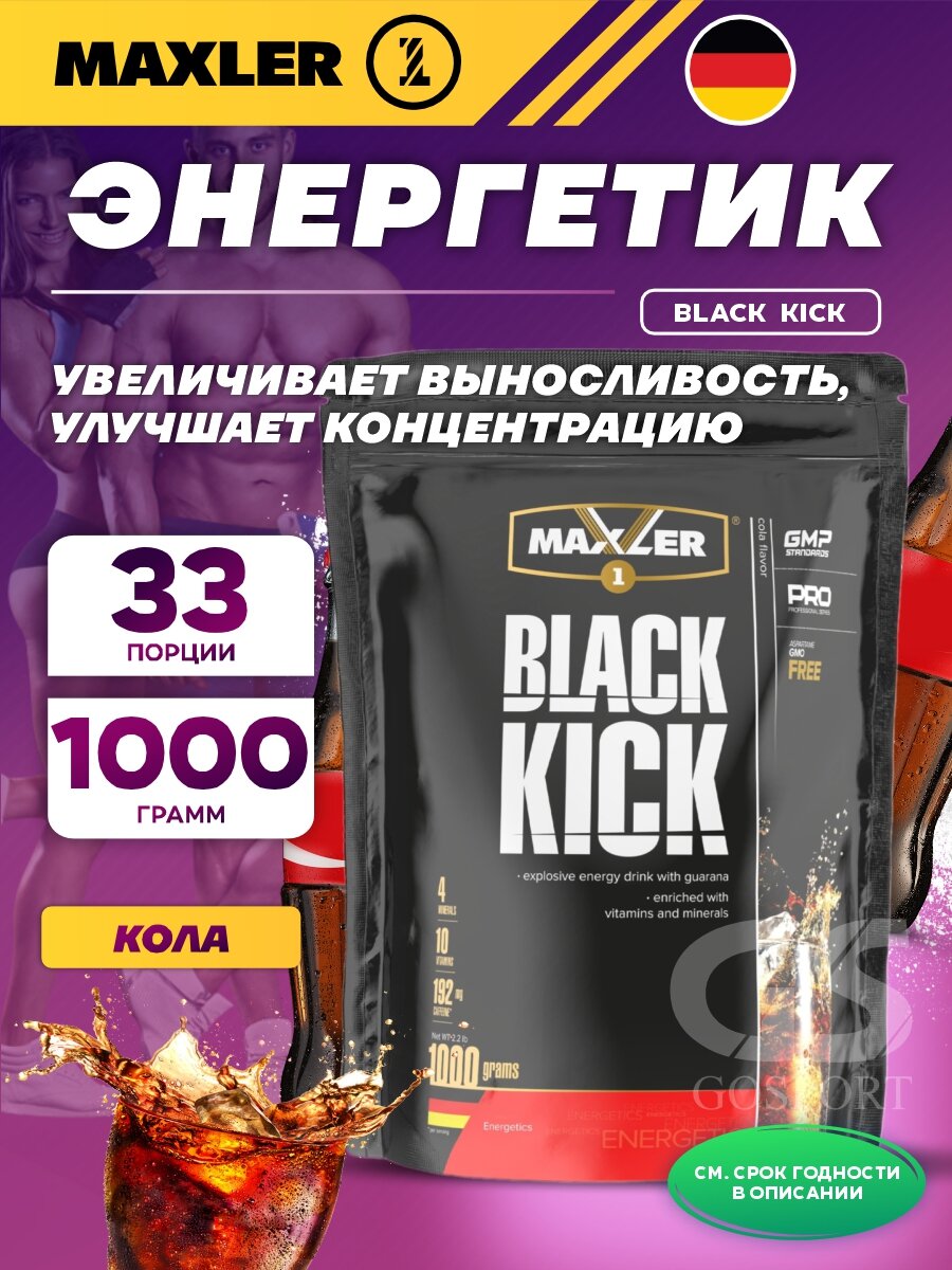 Энергетик Maxler Black Kick 1000 гр. ( Кофеин, Гуарана и витаминный комплекс ) - Кола