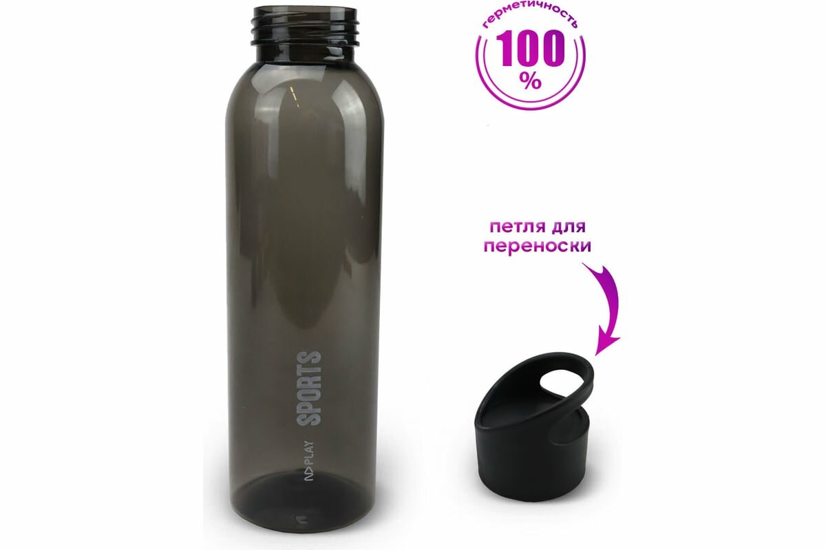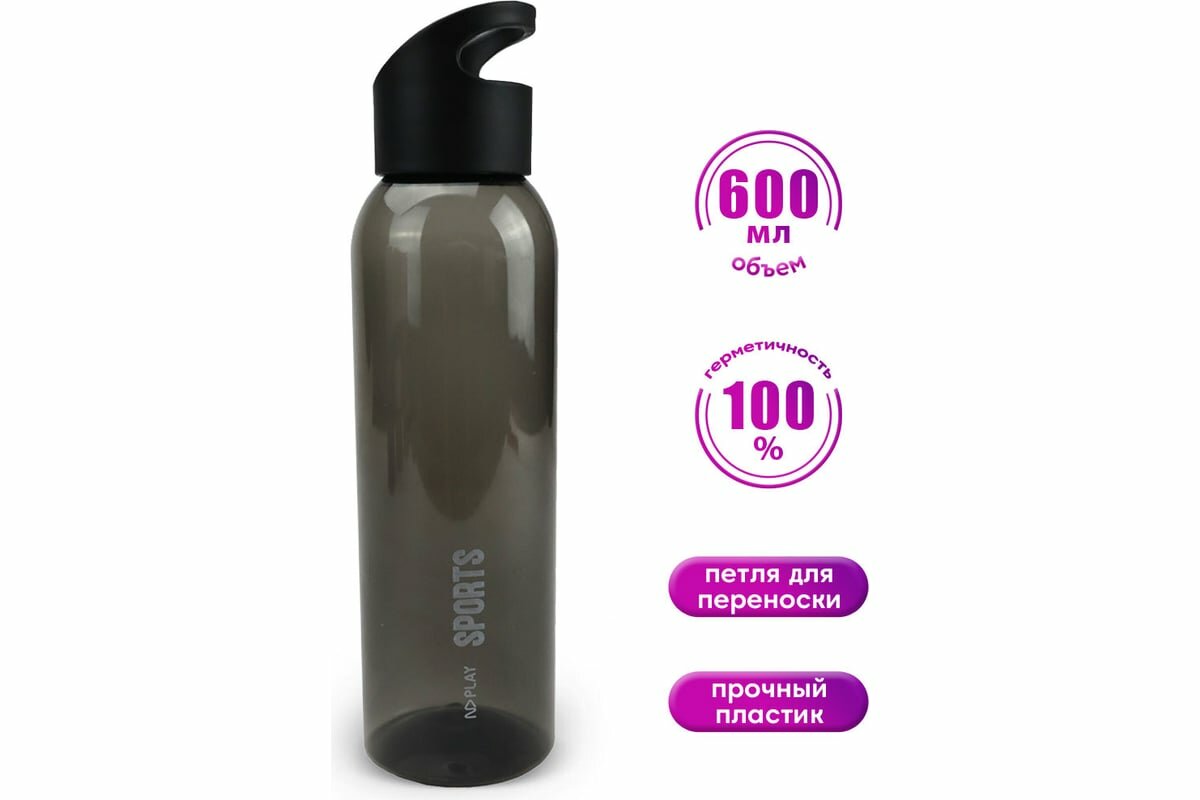 Бутылка спортивная ND Play 600 мл, черная, пластик (303221)