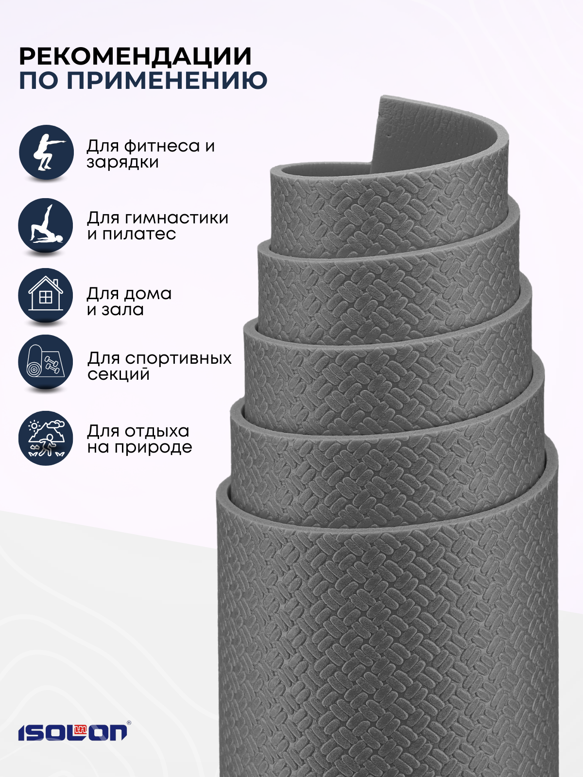 СохранитьКоврик спортивный для зарядки и гимнастики Isolon Sport 5, 180х60 см серый интересное: