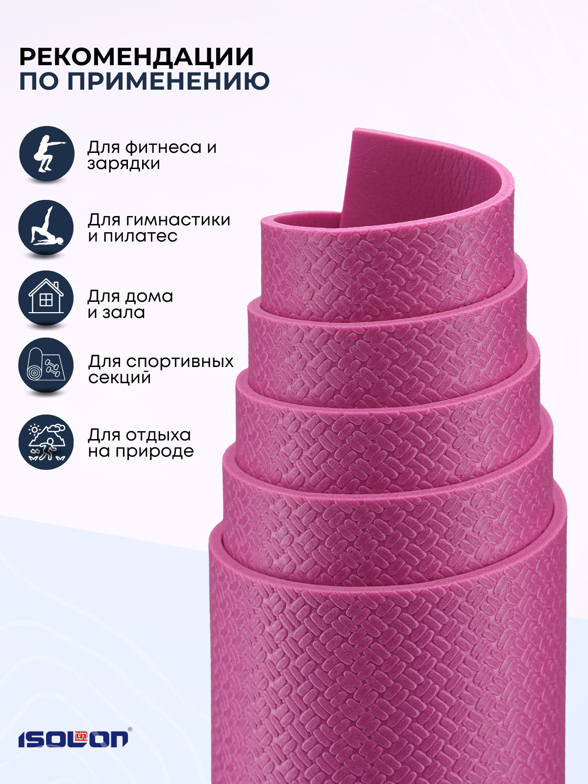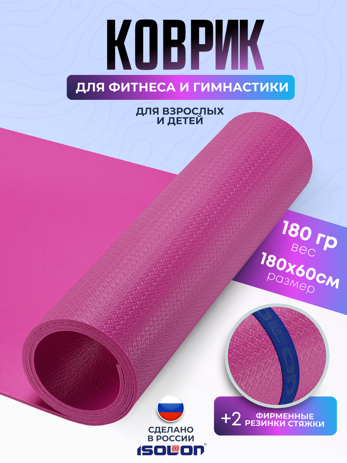 СохранитьКоврик спортивный для зарядки и гимнастики Isolon Sport 5, 180х60 см фуксия интересное: