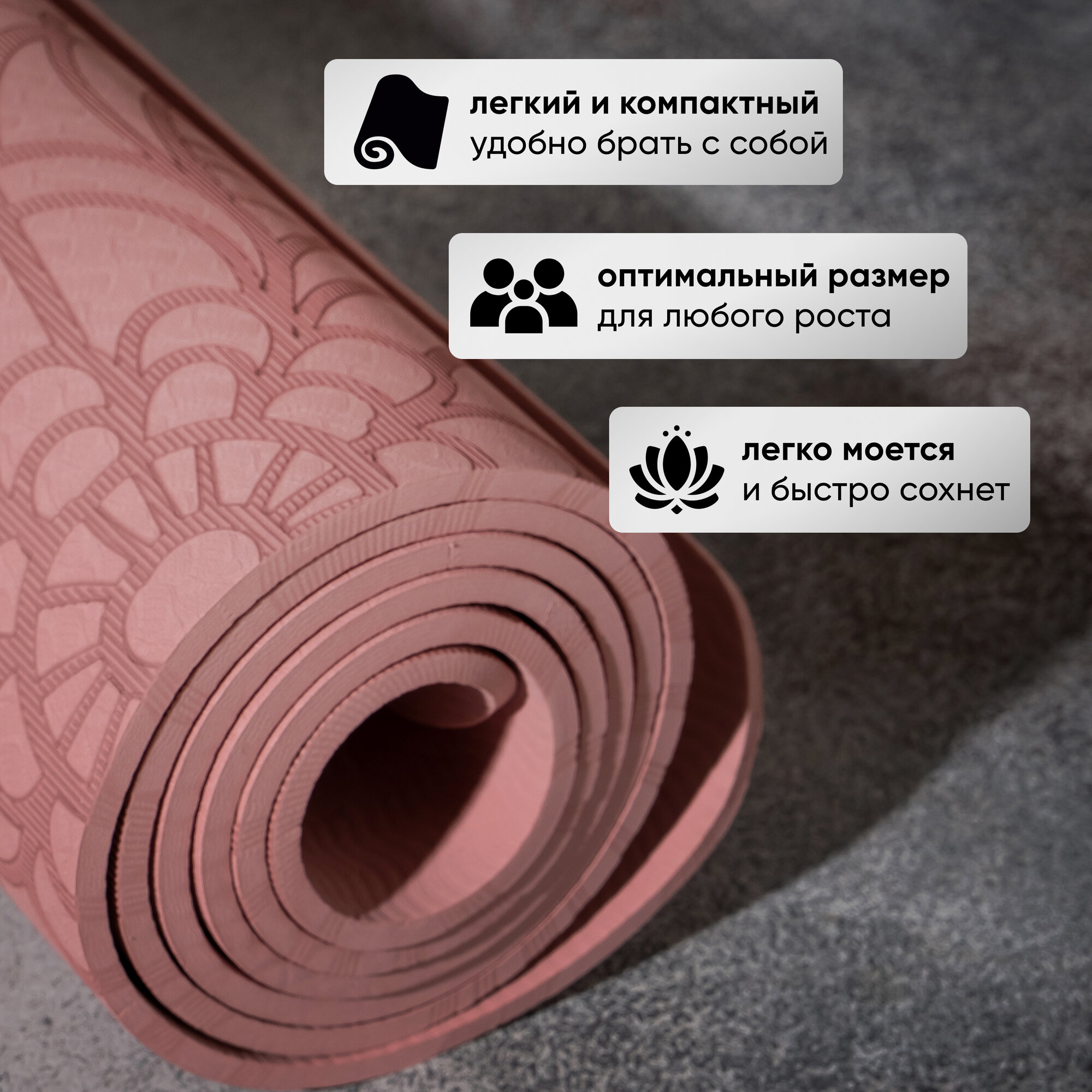 Коврик для йоги "Будда", нескользящий, 183x61x0.6 см, цвет розовый