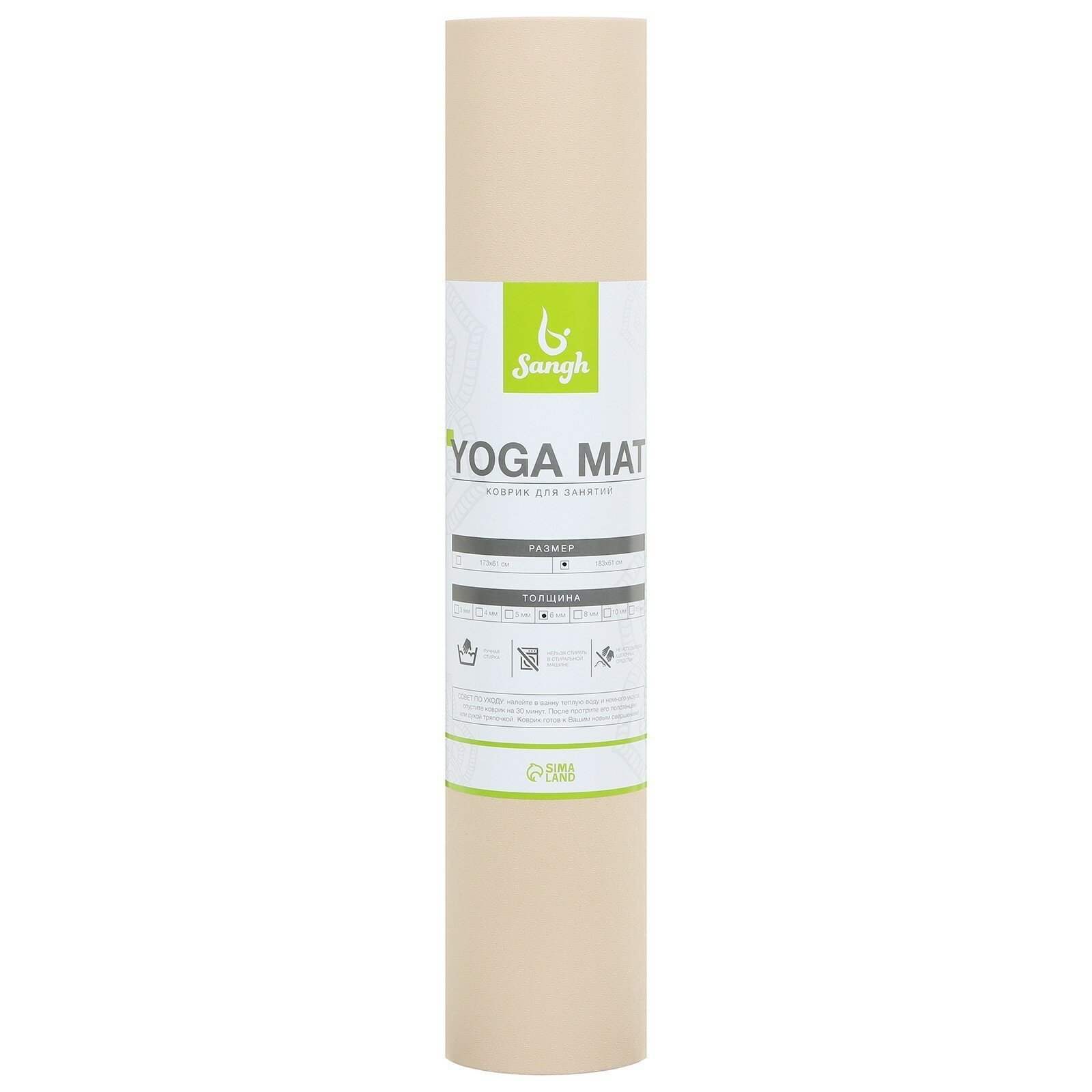 Коврик для йоги Sangh, 183х61х0,6 см, цвет бежевый/коричневый 1шт.