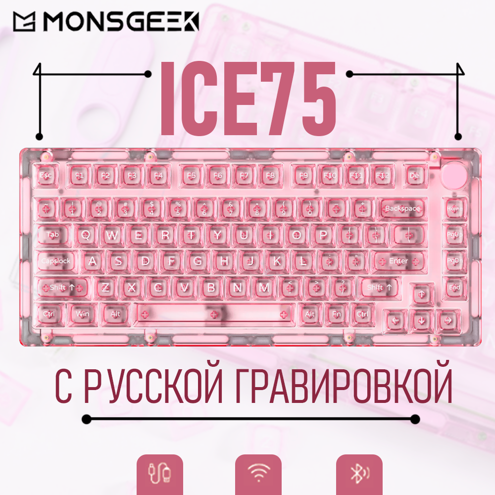 Купить Monsgeek ICE 75 Механическая беспроводная игровая клавиатура. Розовая. Русская раскладка.