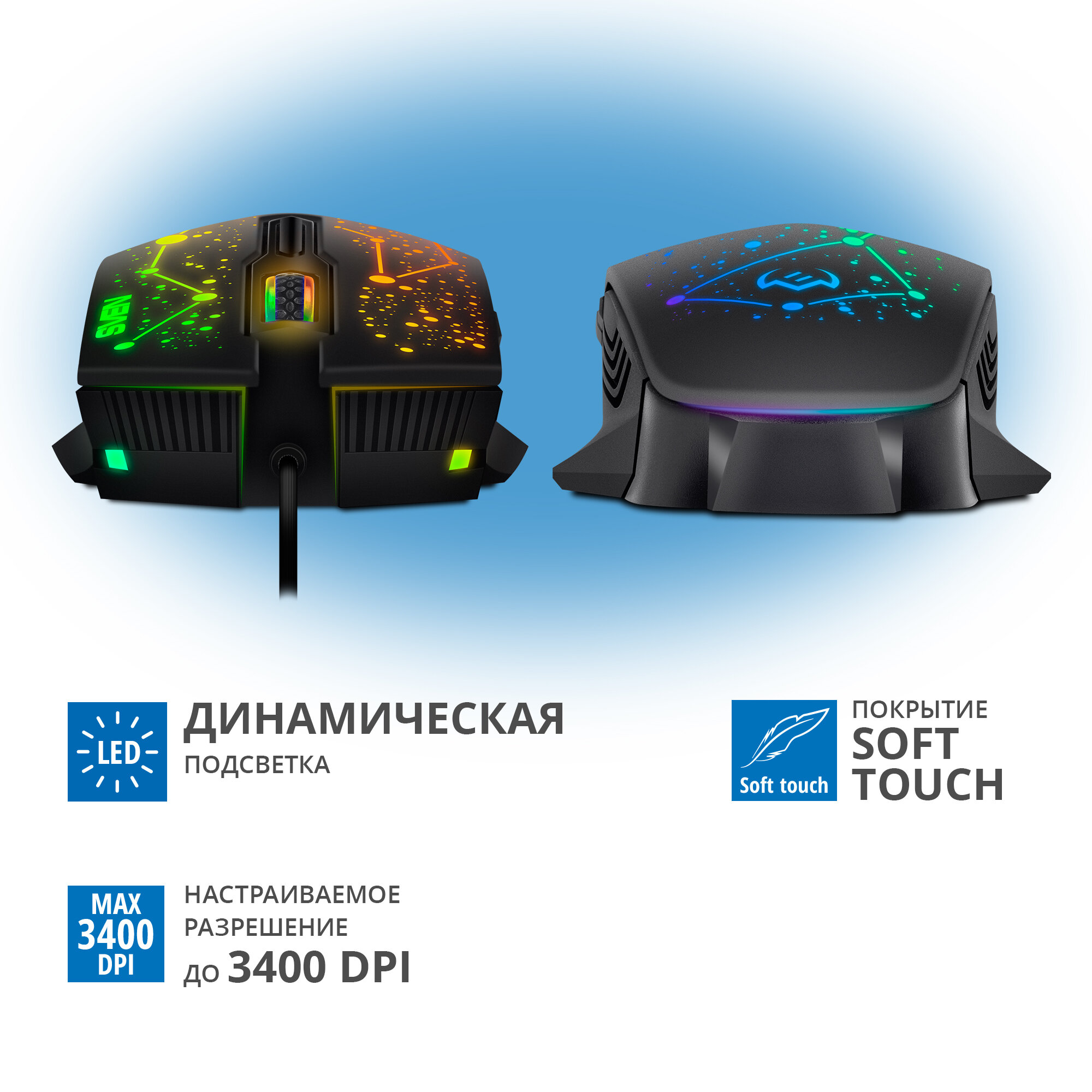 Проводная компьютерная мышь с подсветкой SVEN RX-G730 (USB, 5+1 клавиш, 1000-3400 DPI), черная интересное: