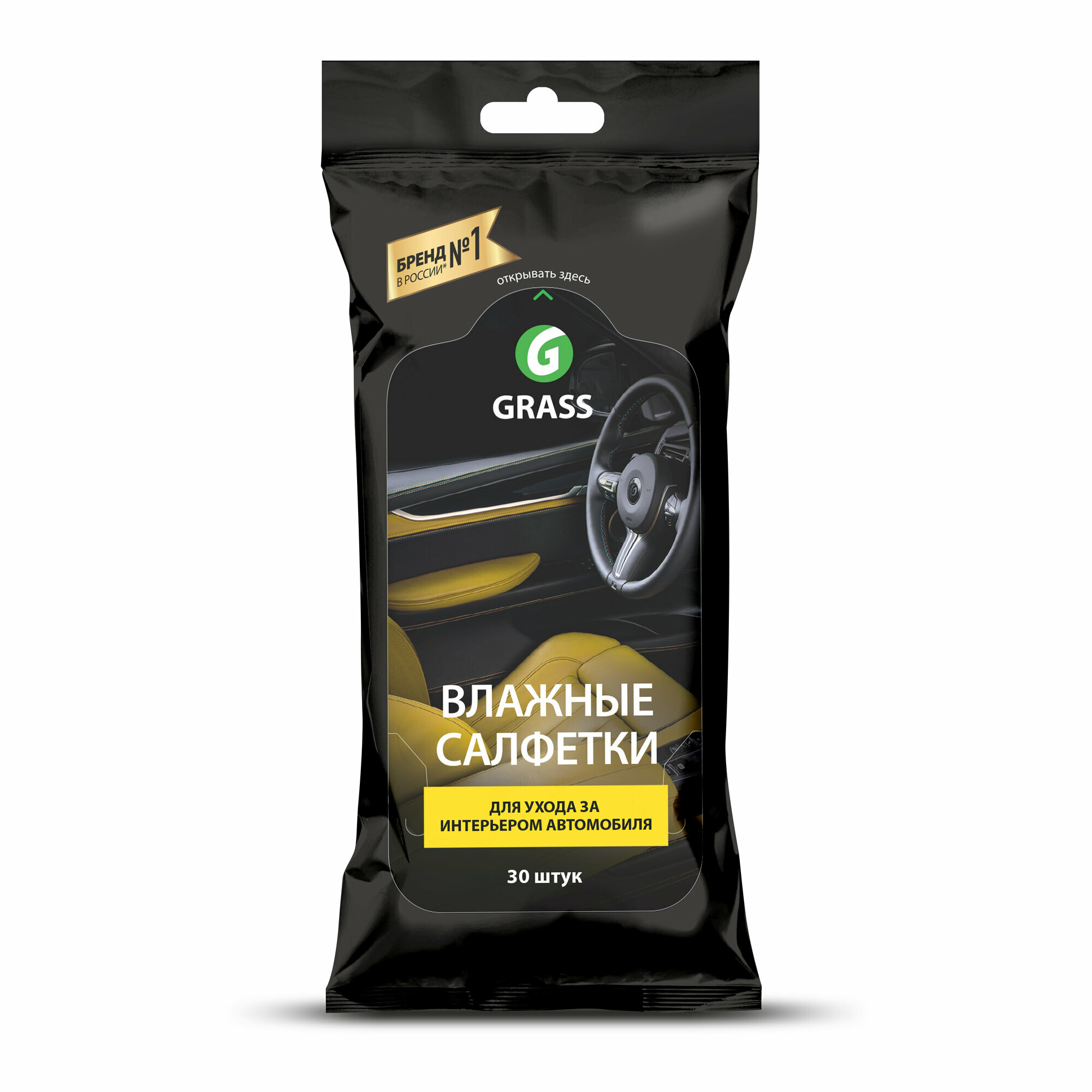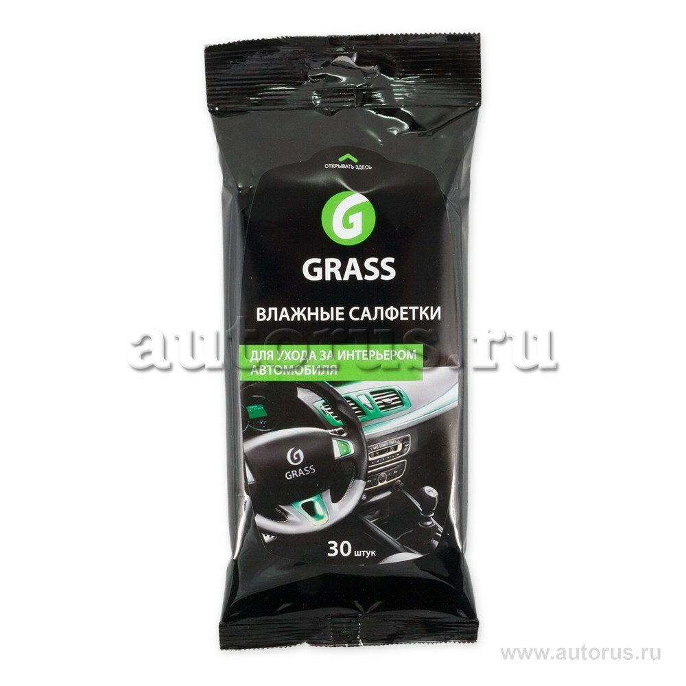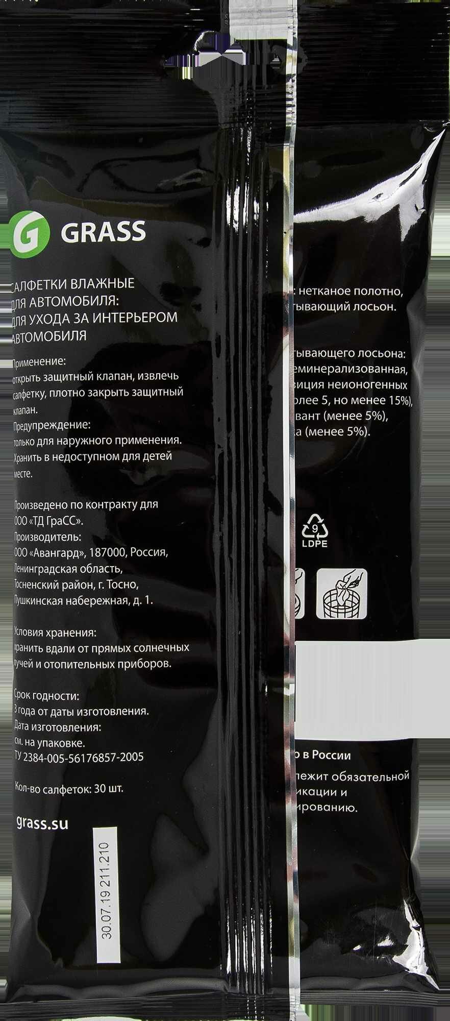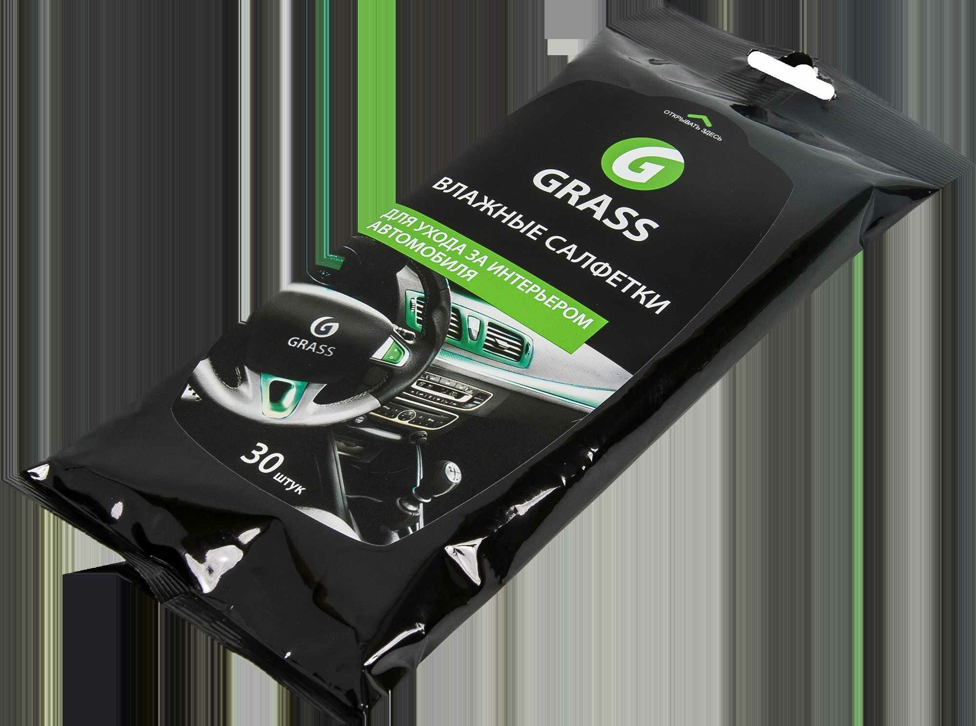 Салфетки влажные Grass для ухода за интерьером автомобиля, 30 шт