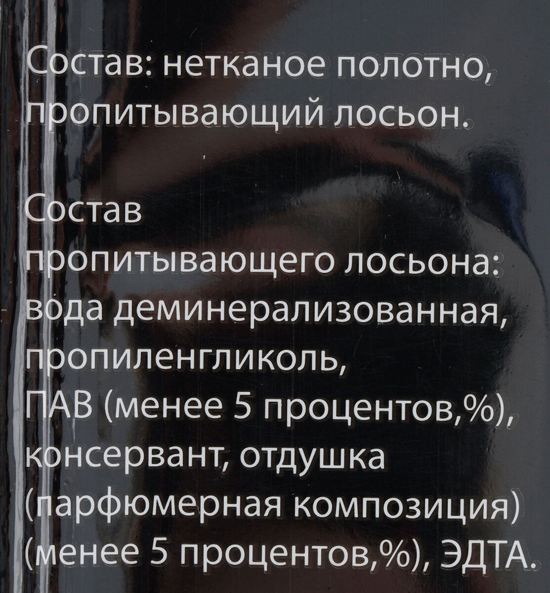 | Состав | нетканое полотно, пропитывающий лосьон: вода деминерализованная композиция неионогенных ПАВ более 5%, но менее 15%, консервант менее 5%, отдушка менее 5% |