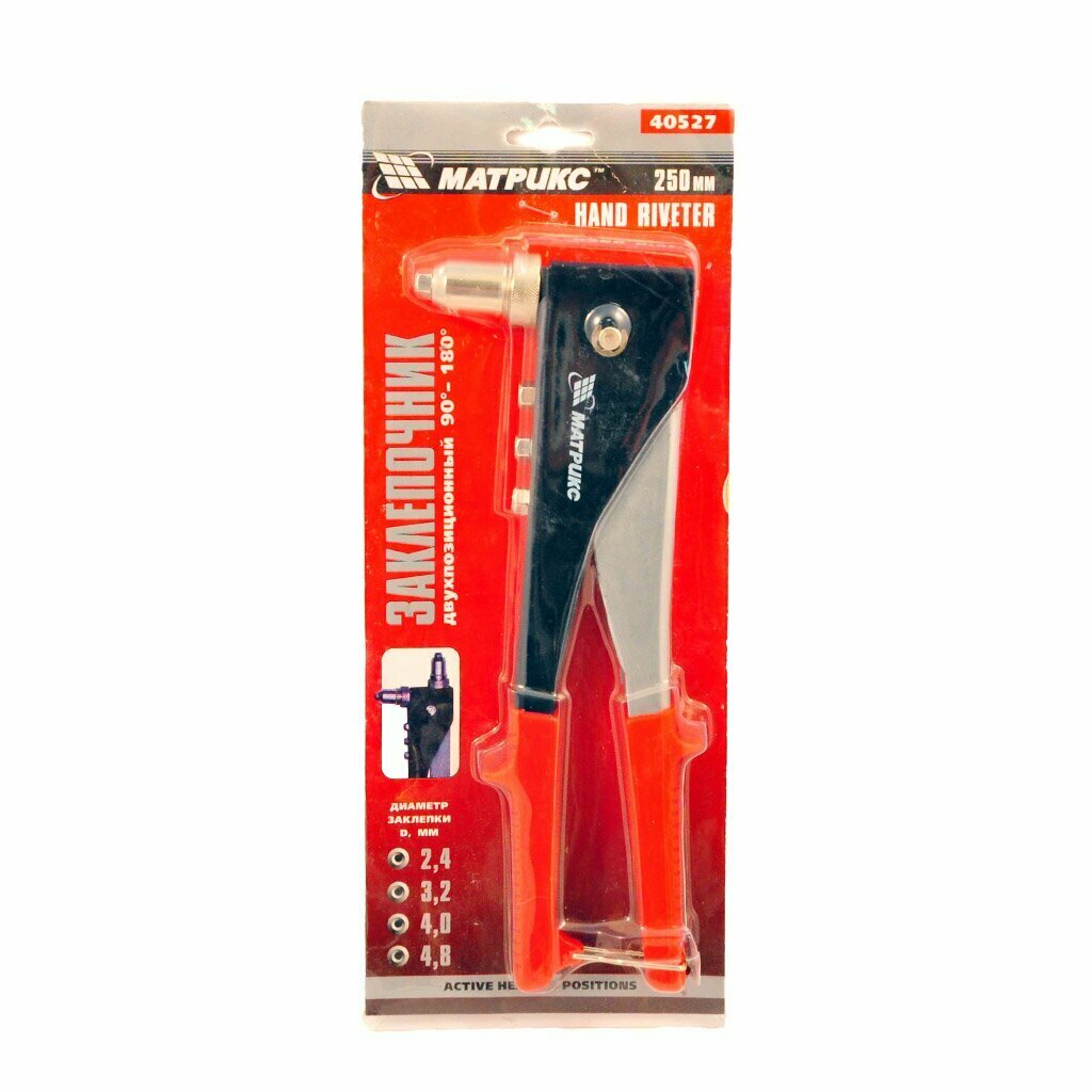 Заклепочник, 250 мм, переставной 0-90 градусов для вытяжных заклепок 2,4-3,2-4,0-4,8 мм Matrix 40527