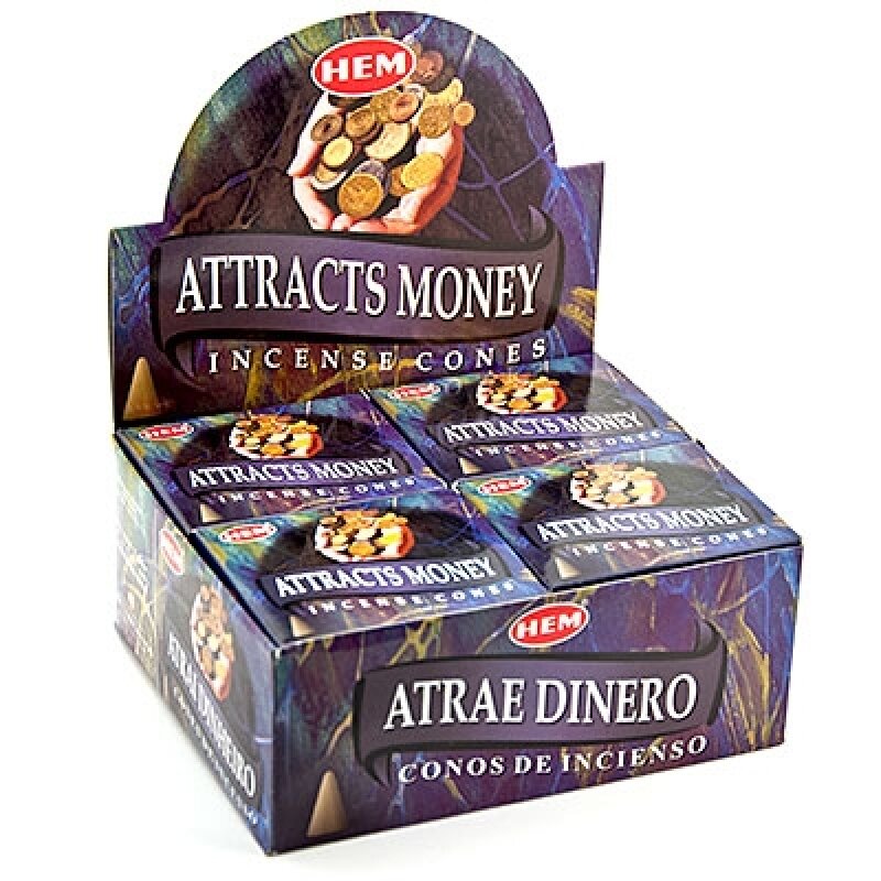 Купить Благовония конусы HEM Attracts Money (Привлечение Денег) 1уп. - 10 конусов