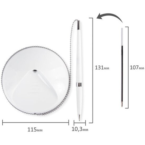 СохранитьРучка шариковая BRAUBERG настольная "Стенд-Пен Уайт2", синяя, цепочка, корпус белый, линия письма 0,5 мм, 141348 интересное: