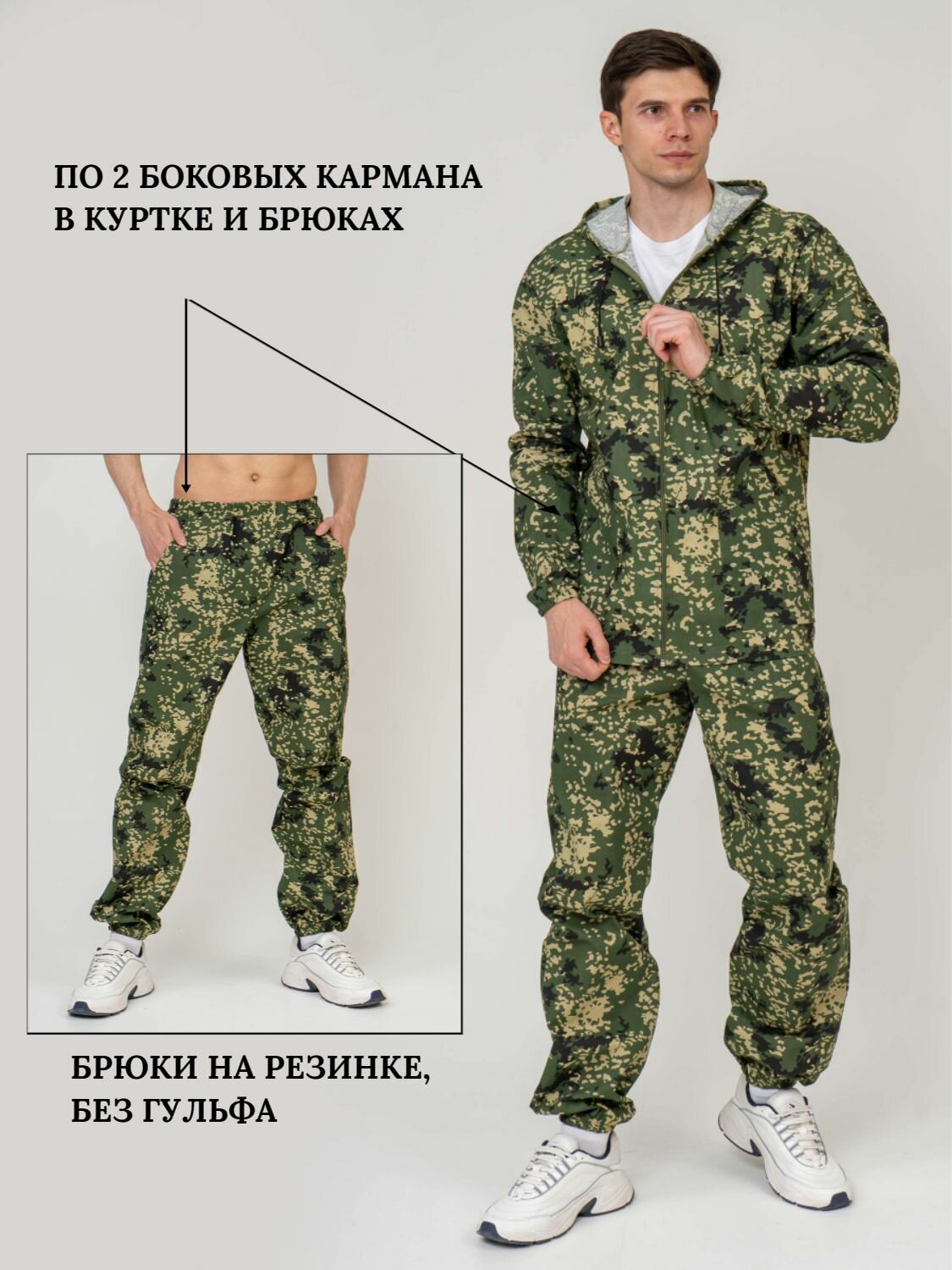 Костюм мужской камуфляжный для рыбалки и активного отдыха ПромДизайн (куртка+брюки), 100% хлопок/ Костюм маскировочный, 44-170RU
