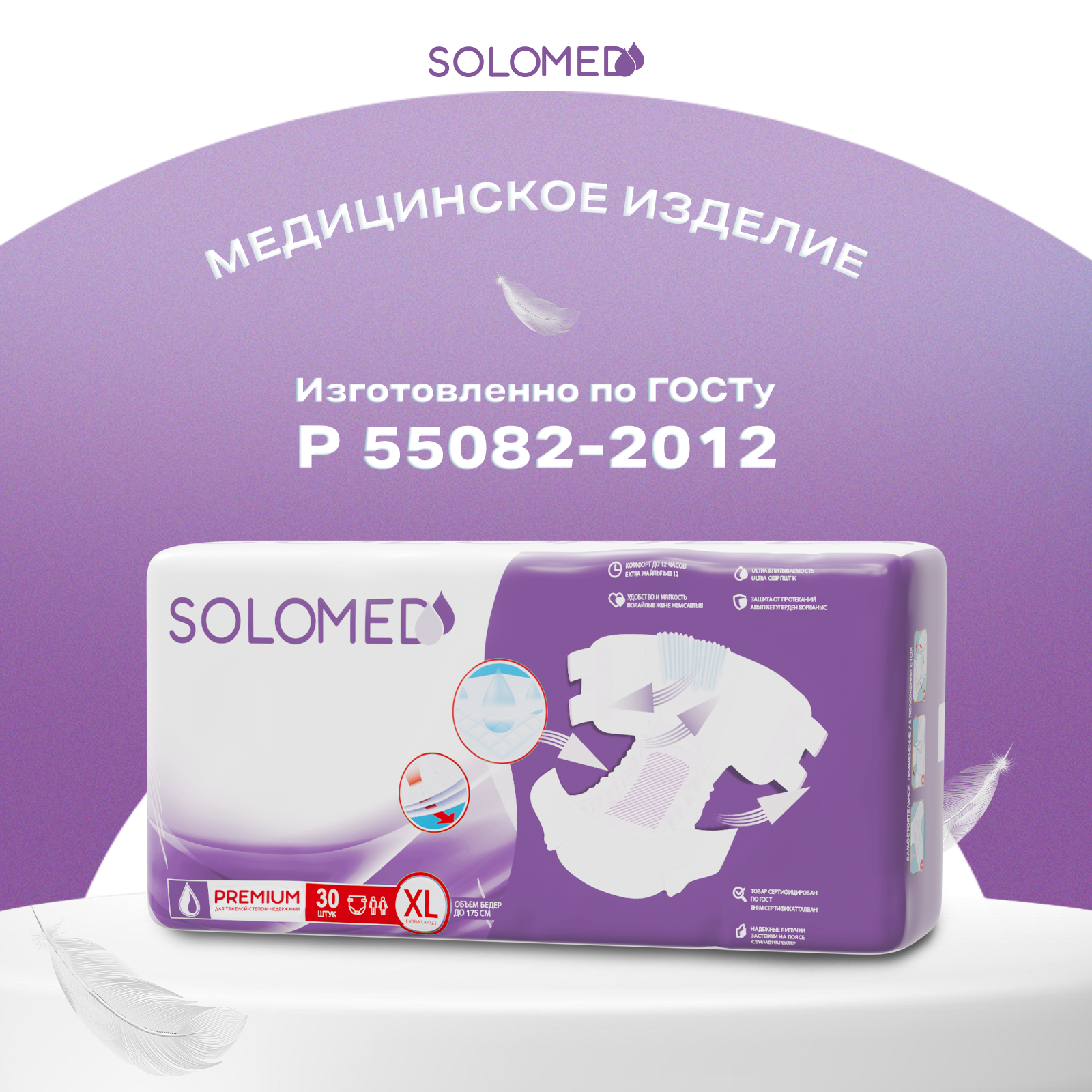 Купить Подгузники для взрослых Solomed Premium ХL, 30 шт (150-175 см) / Впитывающие, ночные, для лежачих, женские и мужские