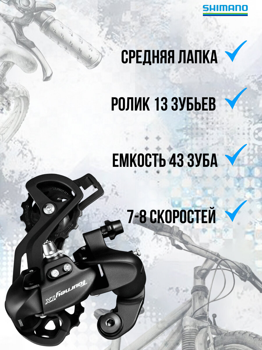 | Дополнительная информация | назначение: горный (MTB); уровень: начальный; трос переключения в комплекте: нет |