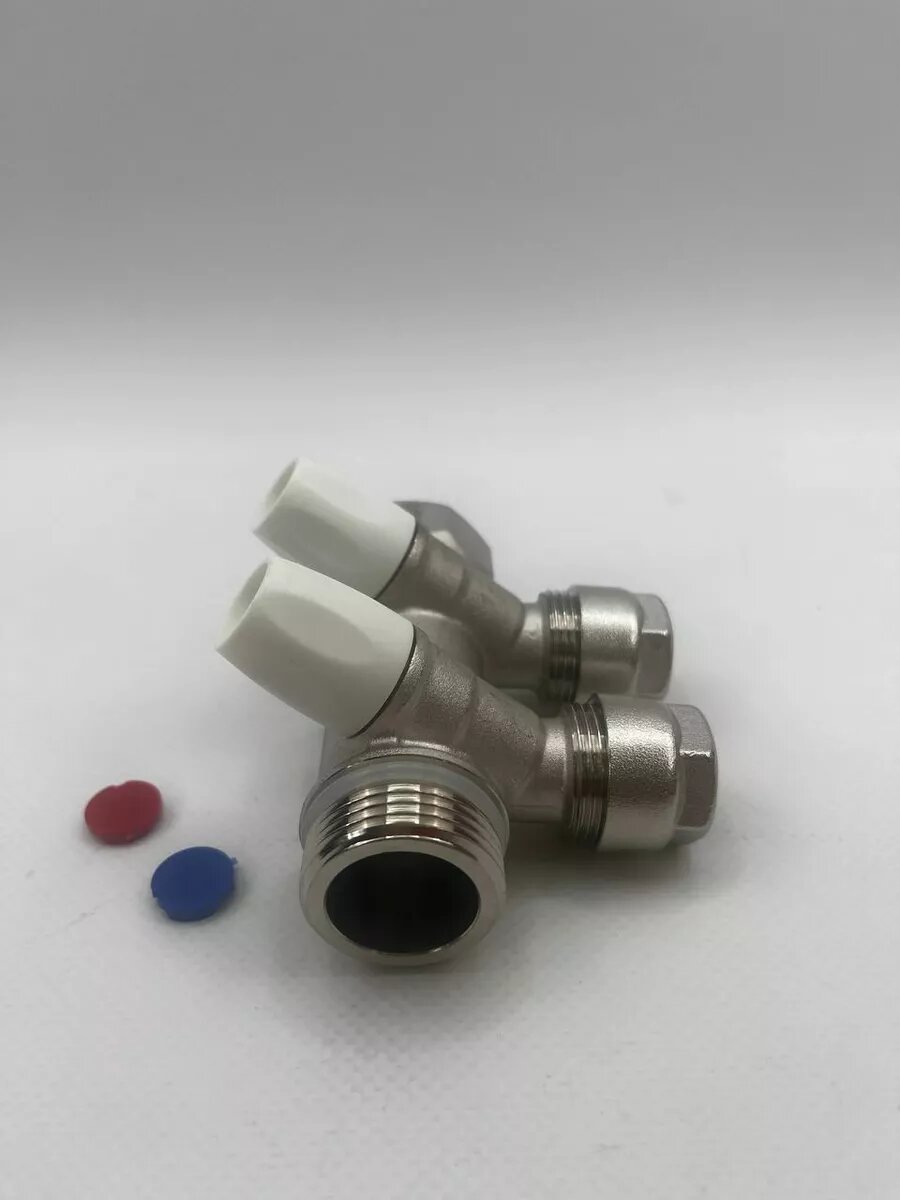 Коллектор TIM MR135N-3/4-C-2, 3/4"х16 мм, внутренняя/наружная, 2 выхода, 45°, с вентилями