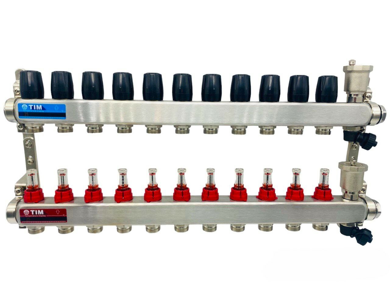 Коллекторная группа с расходомерами из нержавеющей стали 1", 12 контуров TIM арт. KCS5012