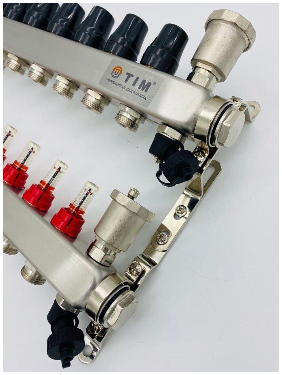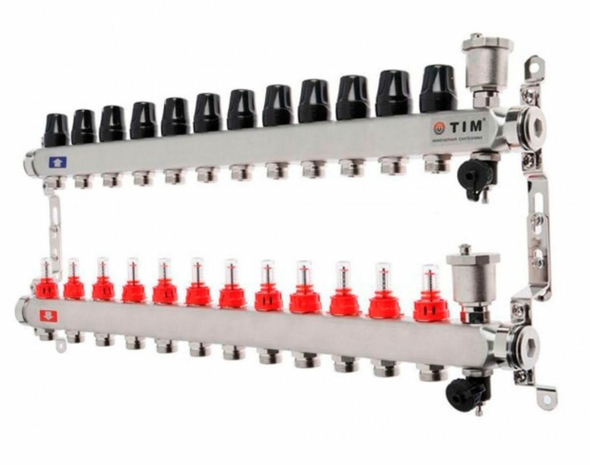 Коллекторная группа с расходомерами из нержавеющей стали 1", 12 контуров TIM арт. KCS5012