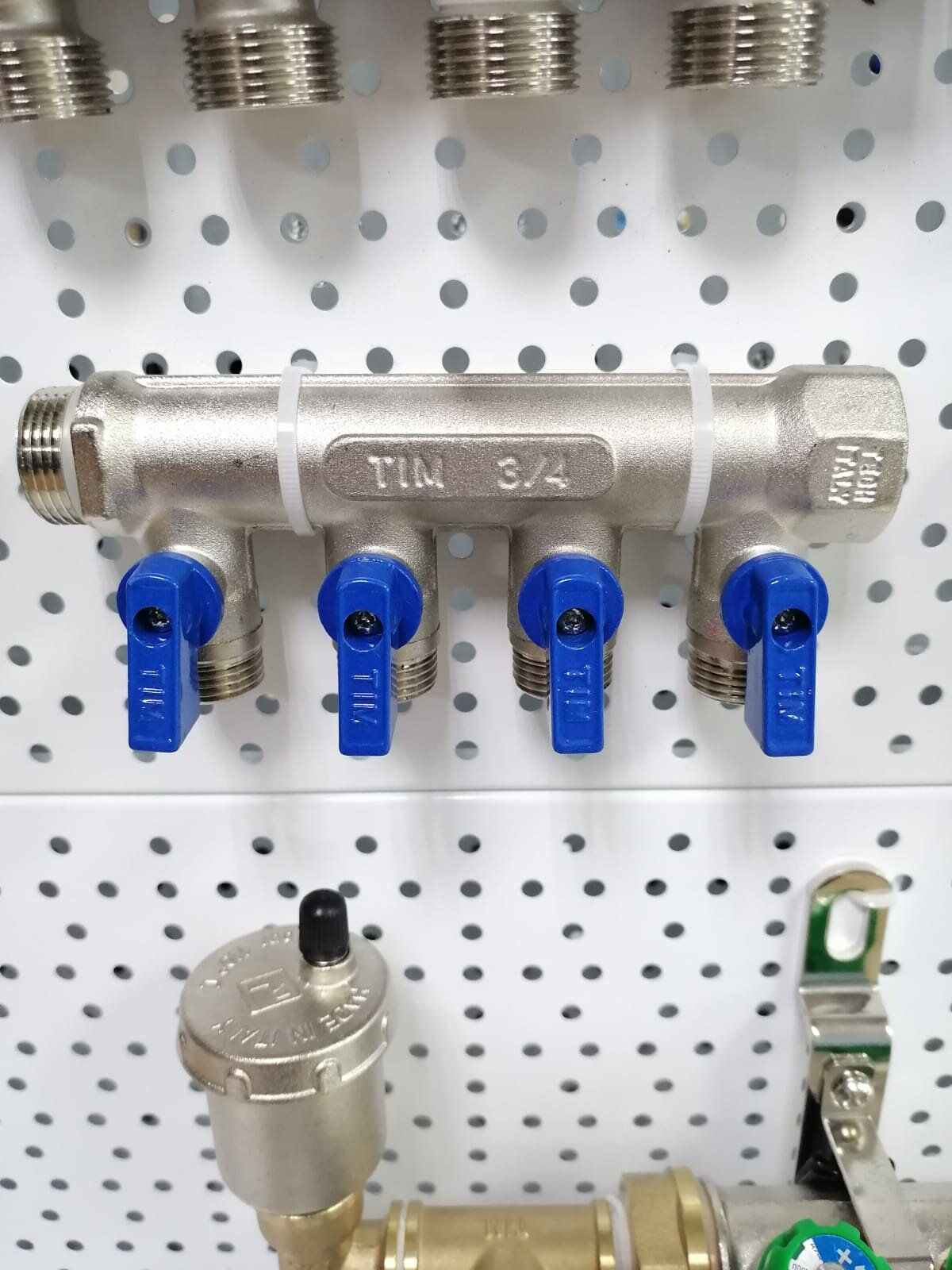 TIM Коллектор с шар. краном 3/4" г/ш х 1/2"ш - 4 вых. никелированный (красный/синий), MV-3/4-N-4 интересное: