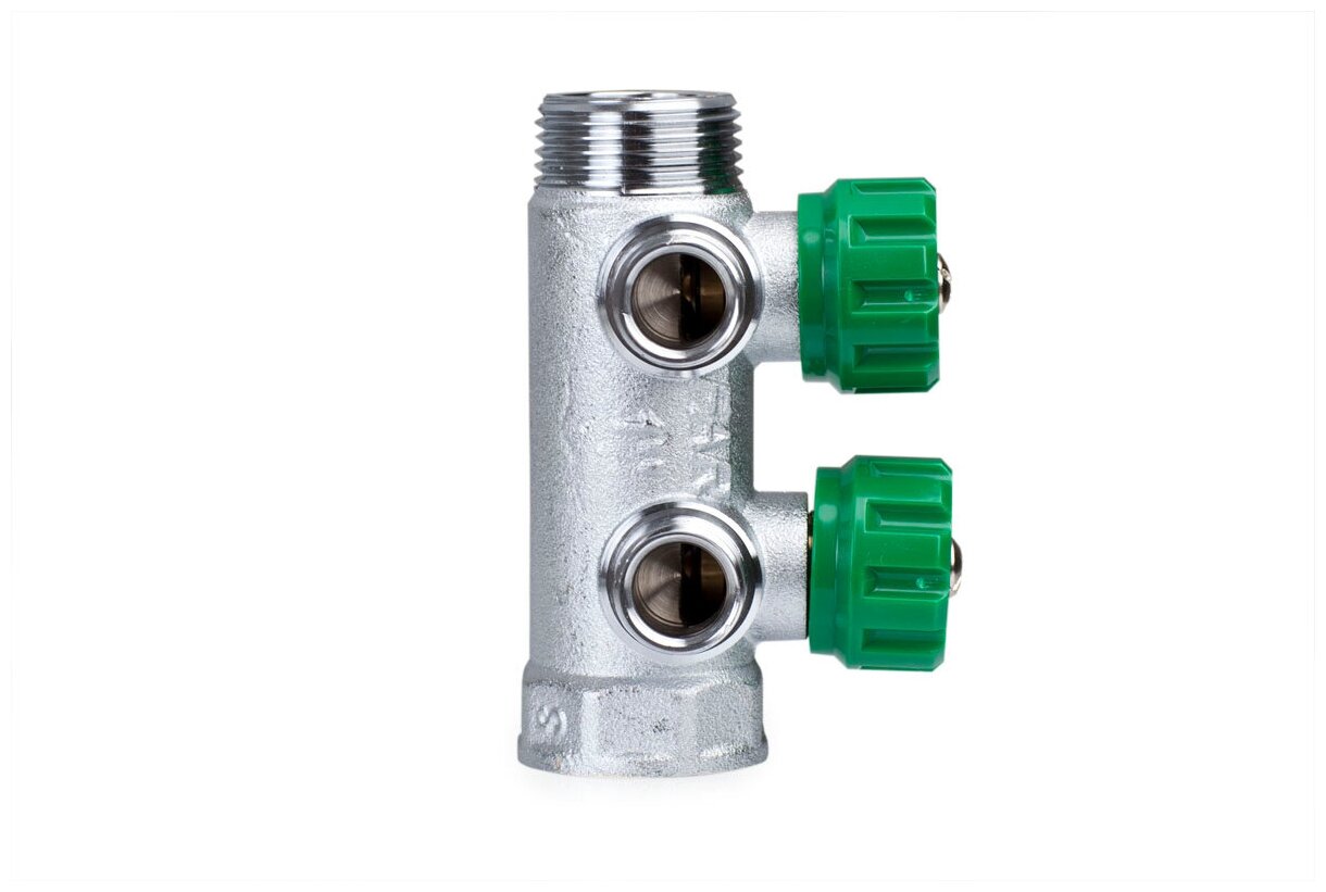 Купить Коллектор FAR 3/4"х1/2" 2 выхода под конус хромированный с вентилями