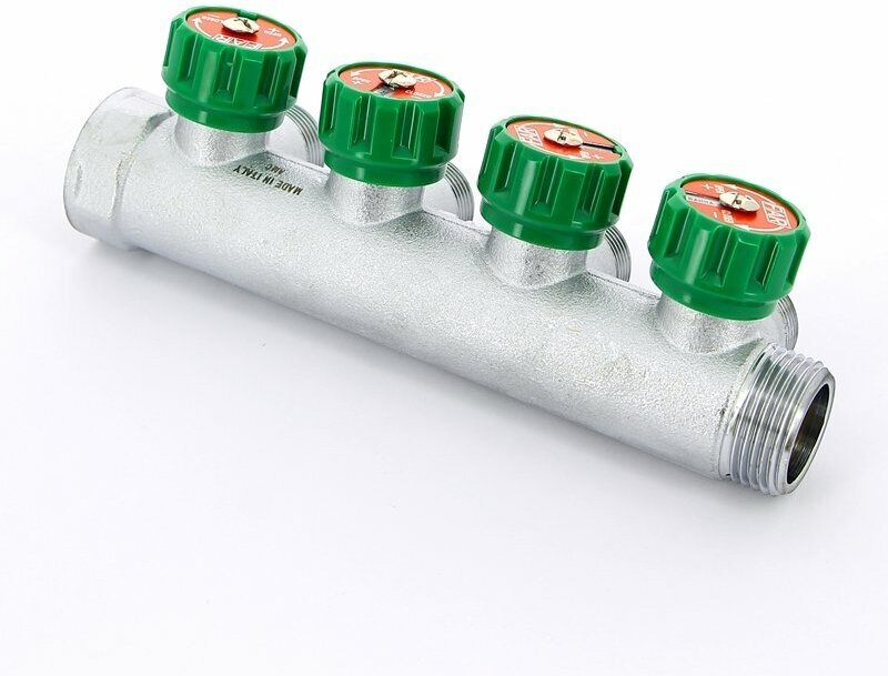 Регулирующий коллектор 1" (ВР-НР) с 4 отв. 1/2" НР (межосев. 45 мм)