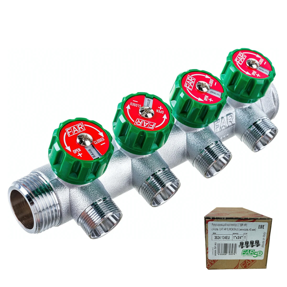 Регулирующий коллектор FAR 1" (ВР-HP) на 4 отвода 3/4" (HP) EUROKONUS FK 3824 134 EU