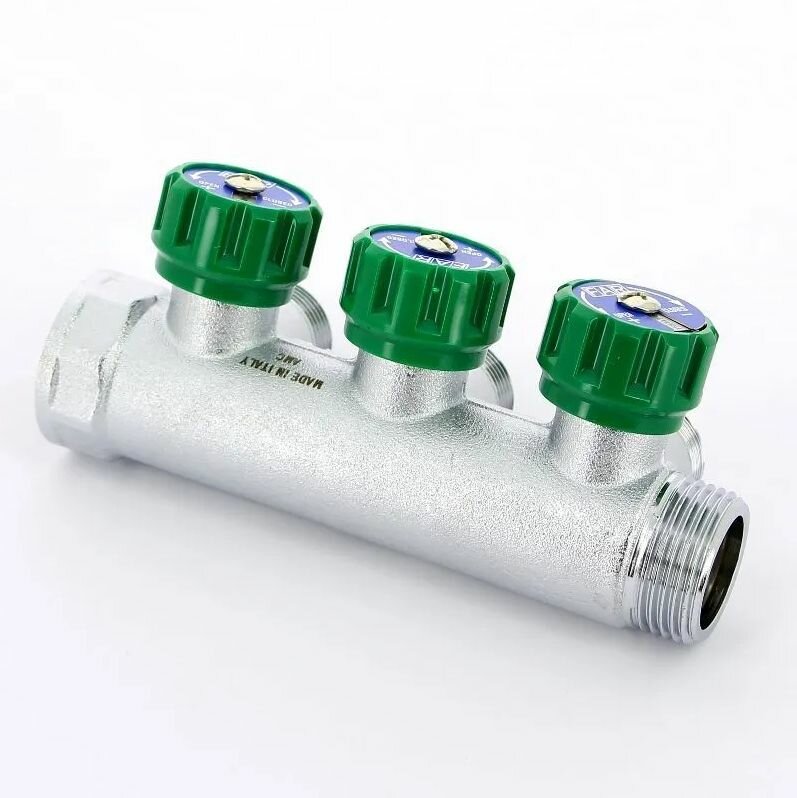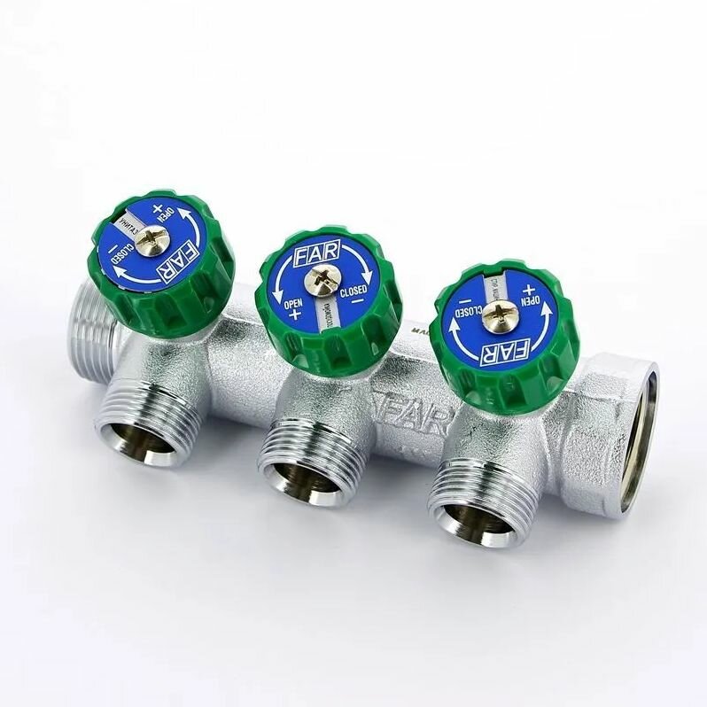 Коллектор FAR 3/4"х1/2" 3 выхода под конус хромированный с вентилями