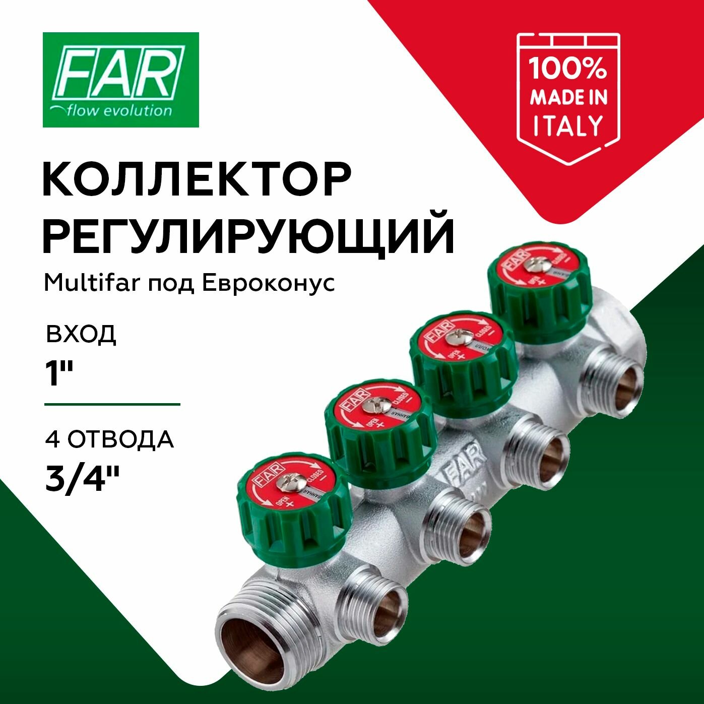 Коллектор регулирующий FAR Multifar 3/4" с 4 отводами 1/2" евроконус