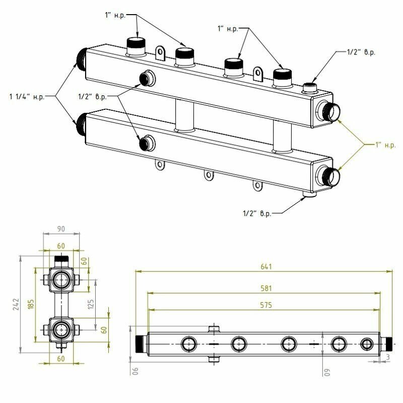 Коллектор Север КМ2+1 распределительный (70 кВт, 3 контура) универсальный для системы отопления квадратного сечения арт. 1925075 интересное: