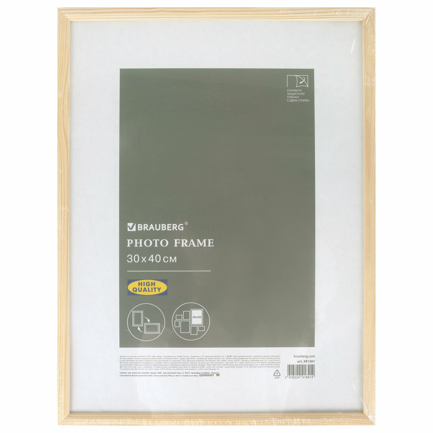 Рамка 21х30см, дерево, багет 14мм, BRAUBERG Elegant, цвет натуральный, акриловый экран, 391296